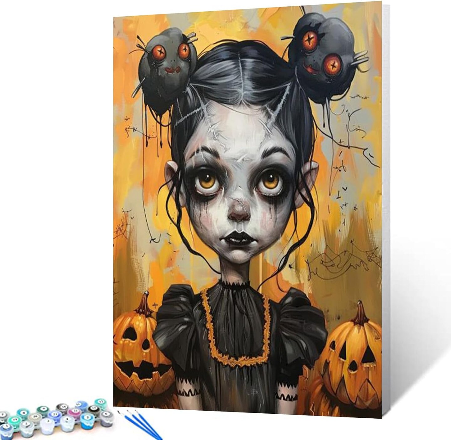 Halloween Pumpkin Strange Girl Paint by Numbers Kit – Cute Weird Girl Portrait DIY Painting on Canvas with Acrylic Paints & Brushes for Adults & Beginners, 16x20 Inch (No Frame)
