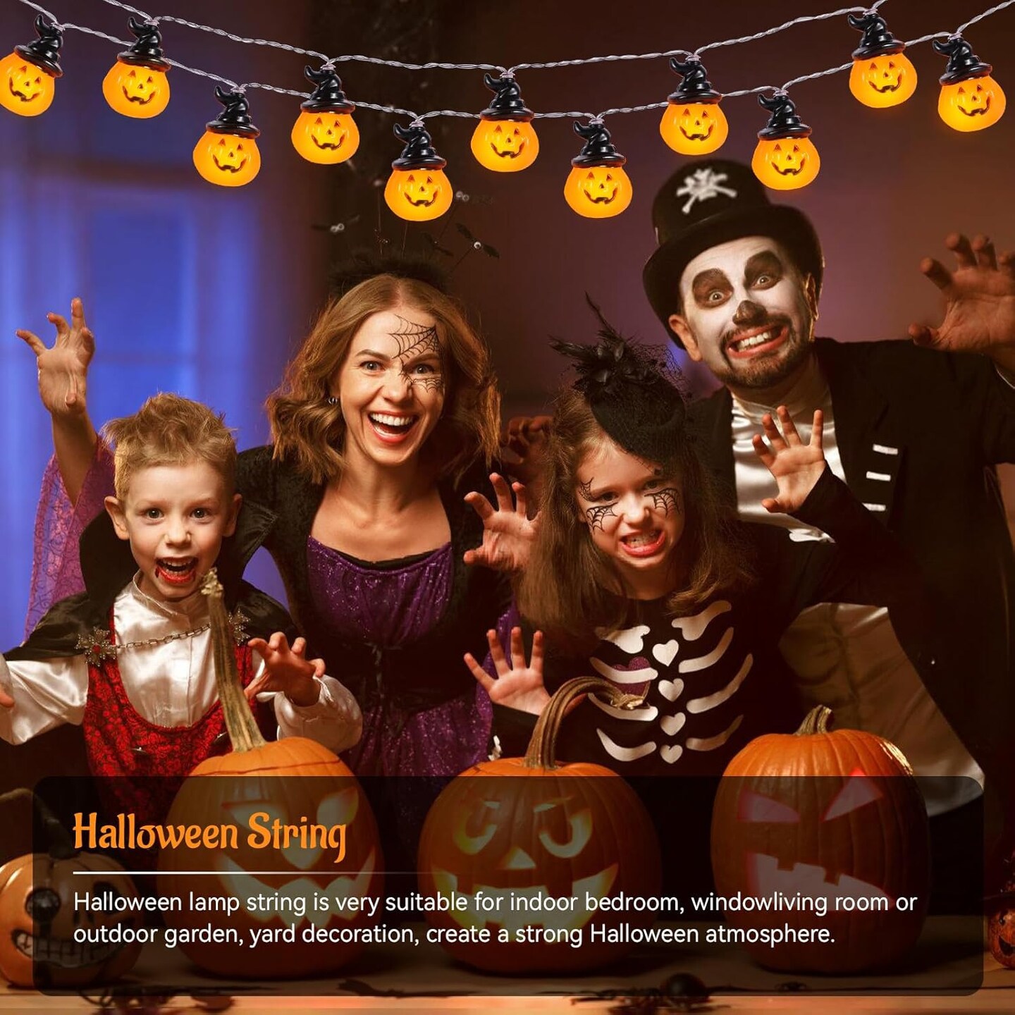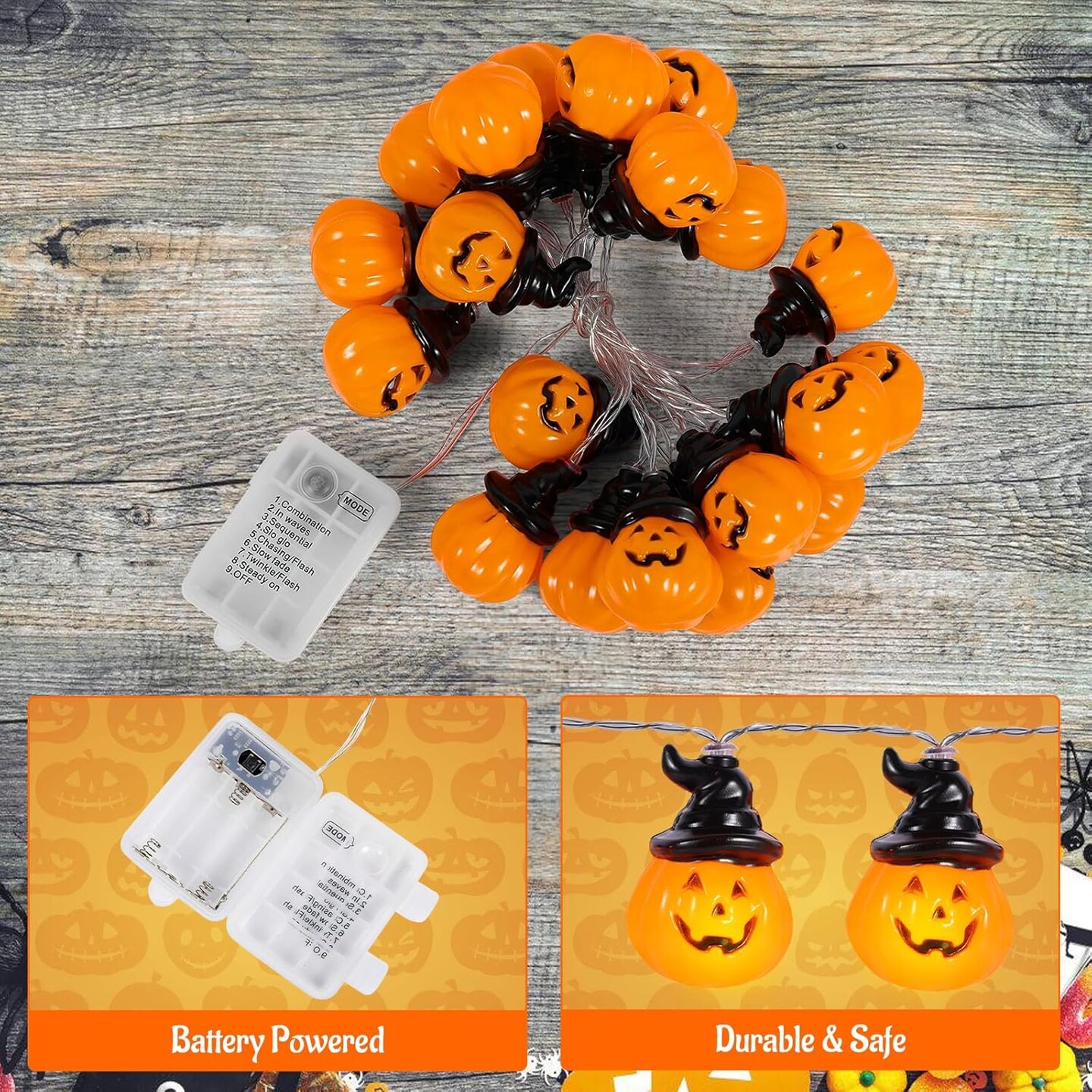 Halloween Pumpkin String Lights – 20 LED, 9.8FT, 8 Modes, Battery Operated, Waterproof, Indoor/Outdoor Halloween Decorations