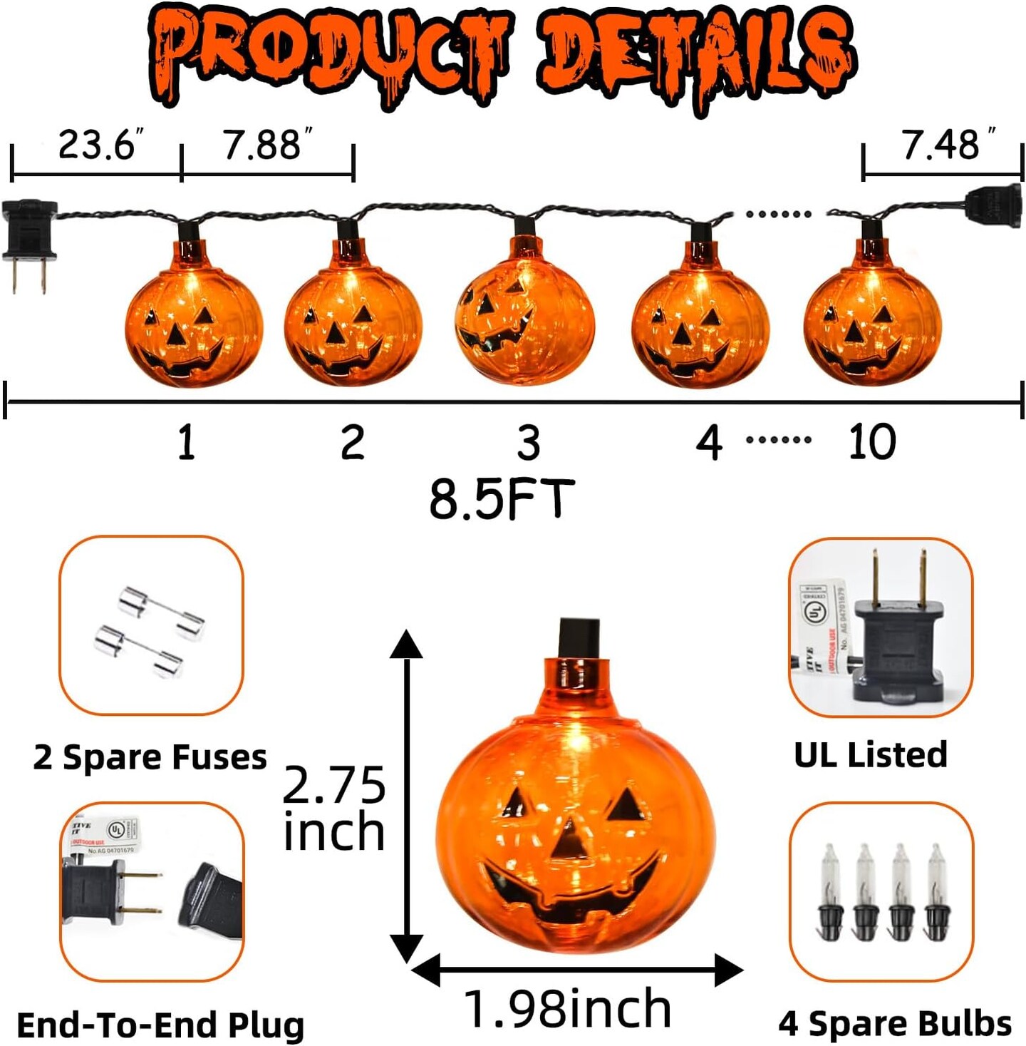 Halloween Pumpkin String Lights - 8.5 Feet (10 Clear Pumpkin)