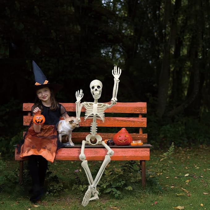 Halloween Skeleton Decorations, 36in/3ft Plastic Full Body with Movable Joints Skeleton for Halloween Party Prop Graveyard Haunted House Decorations