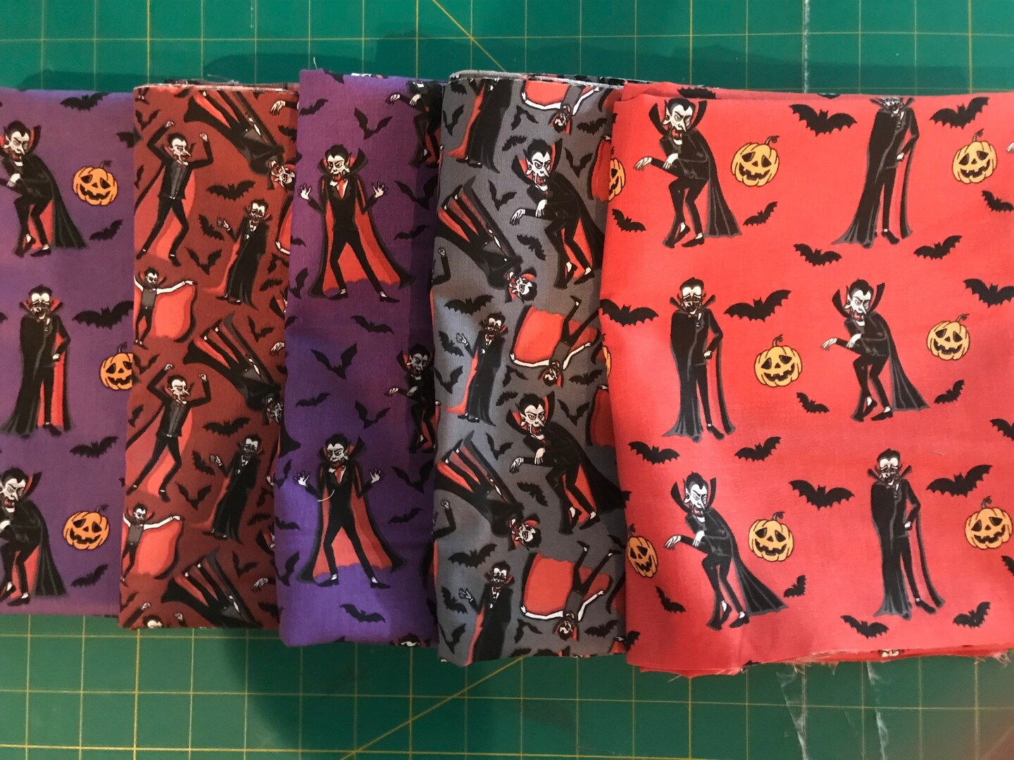 Halloween Vampires 100% Cotton 1 yard Precut Fabric Bundles, 5 pieces