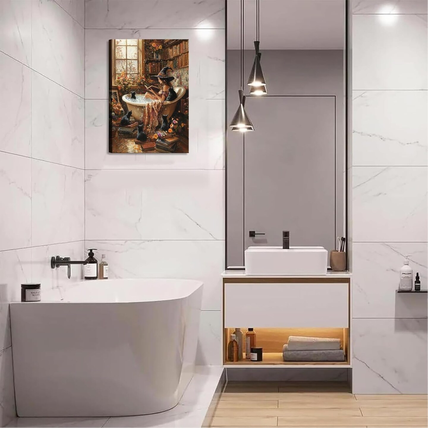 Halloween Witch Black Cat Wall Art Canvas - 16L"x12W" (Witch)