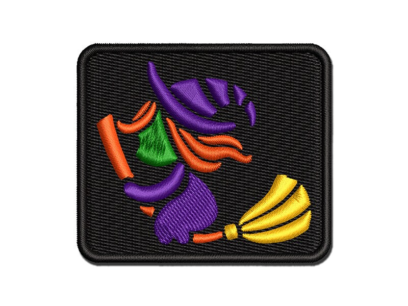 Halloween Witch on Broomstick Multi-Color Embroidered Iron-On or Hook & Loop Patch Applique