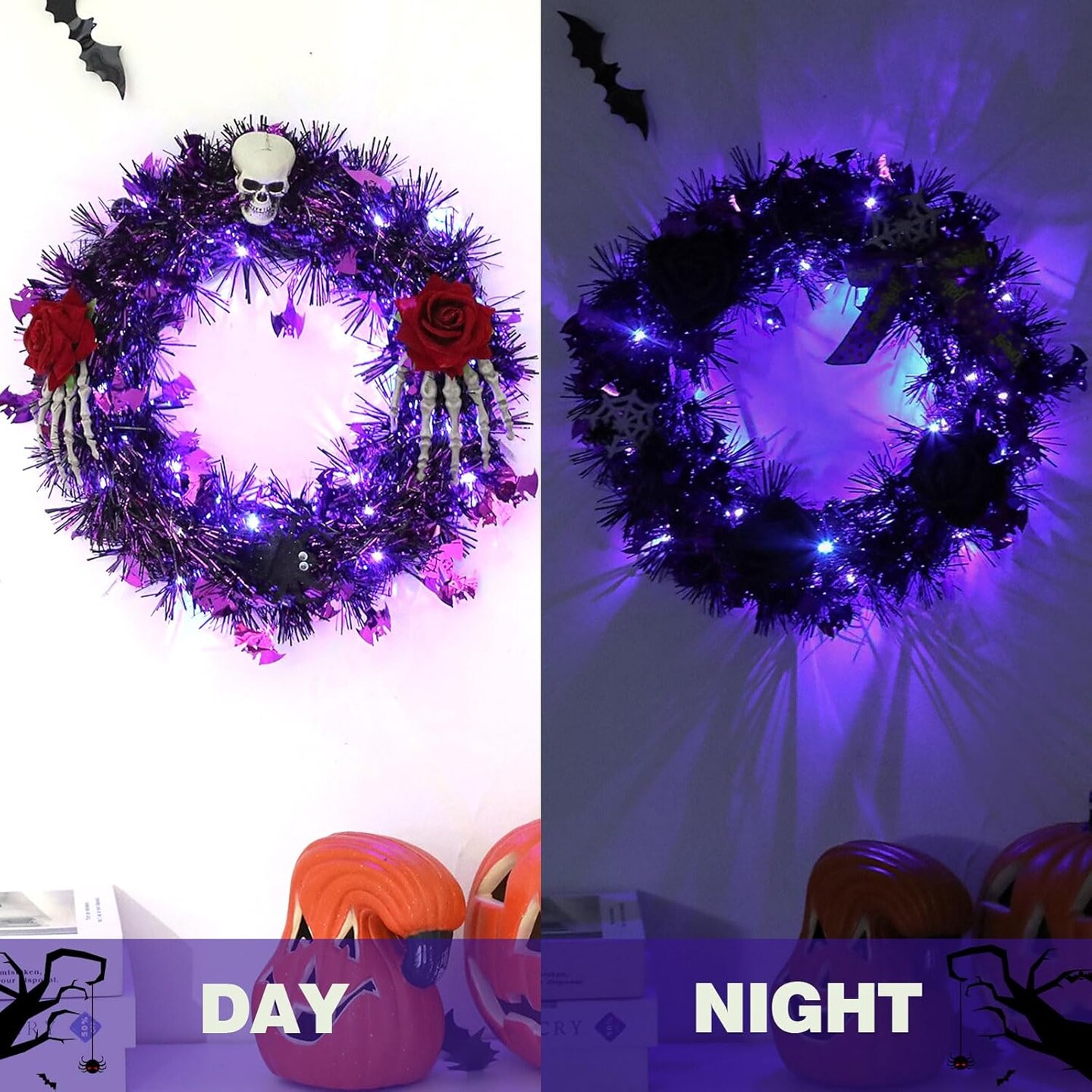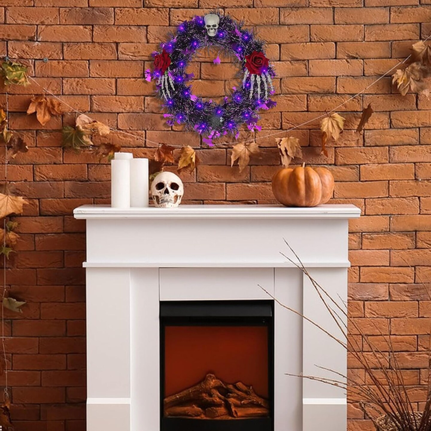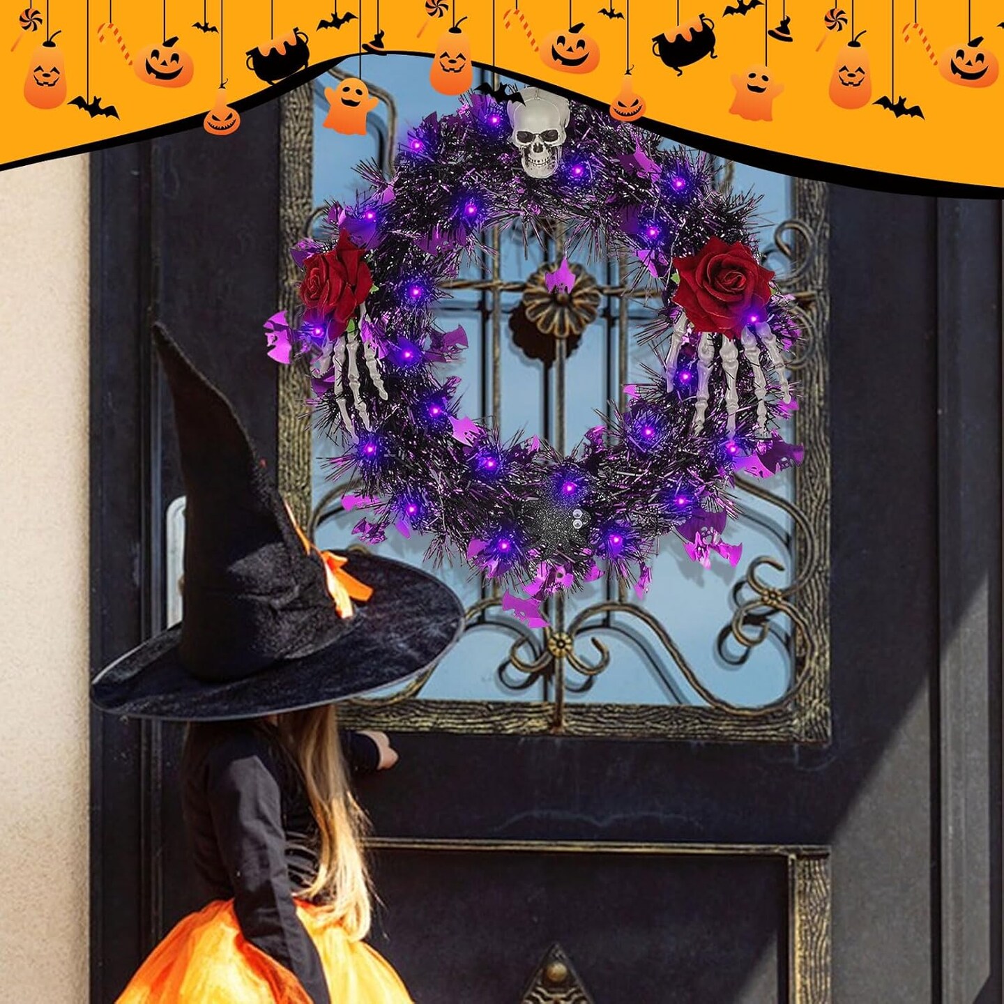 Halloween Wreath for Front Door with Lights