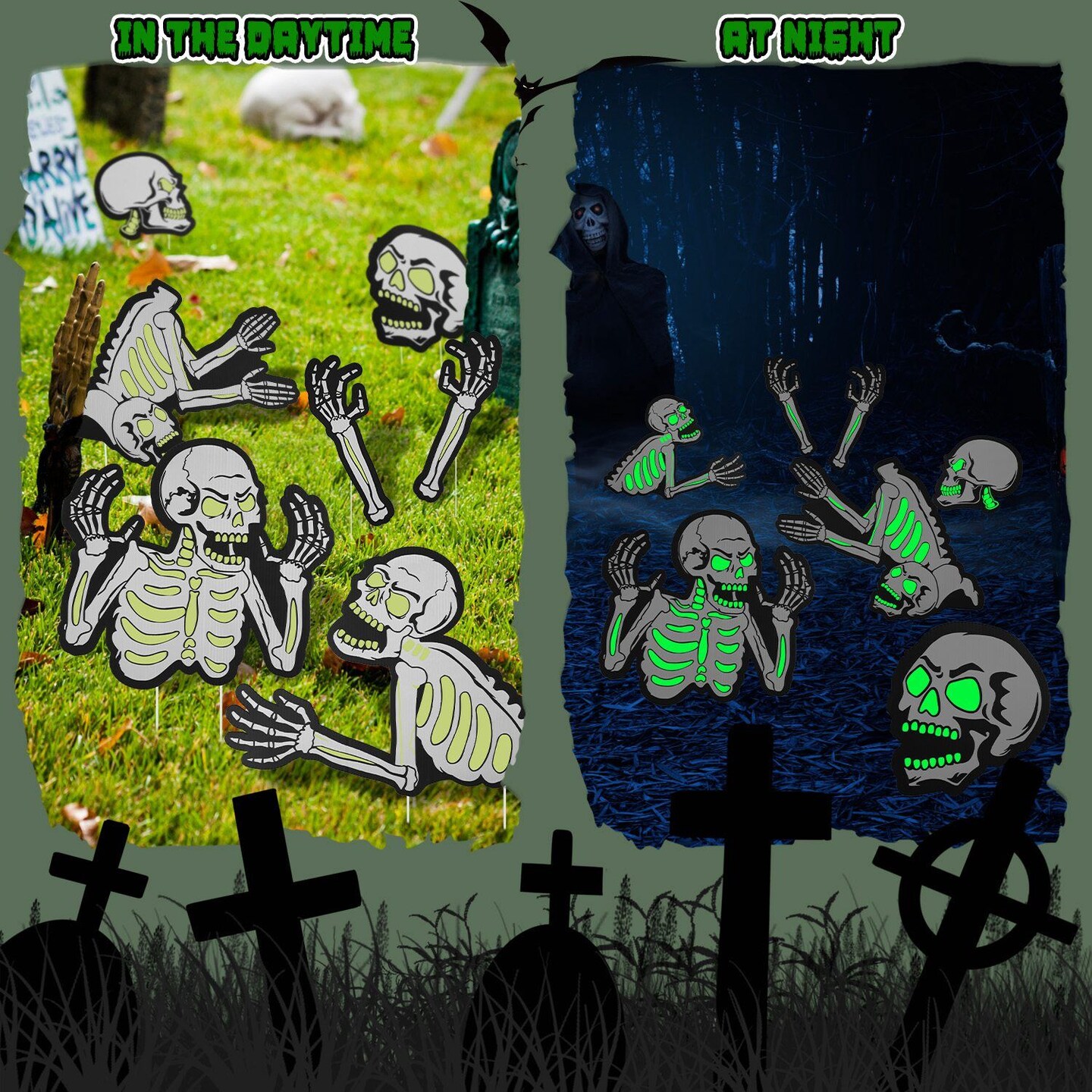 Halloween Yard Sign Decorations Glow in the Dark Halloween Fluorescence Lawn Sign with 10 Stakes for Haunted House Garden Yard and Scary Theme Party