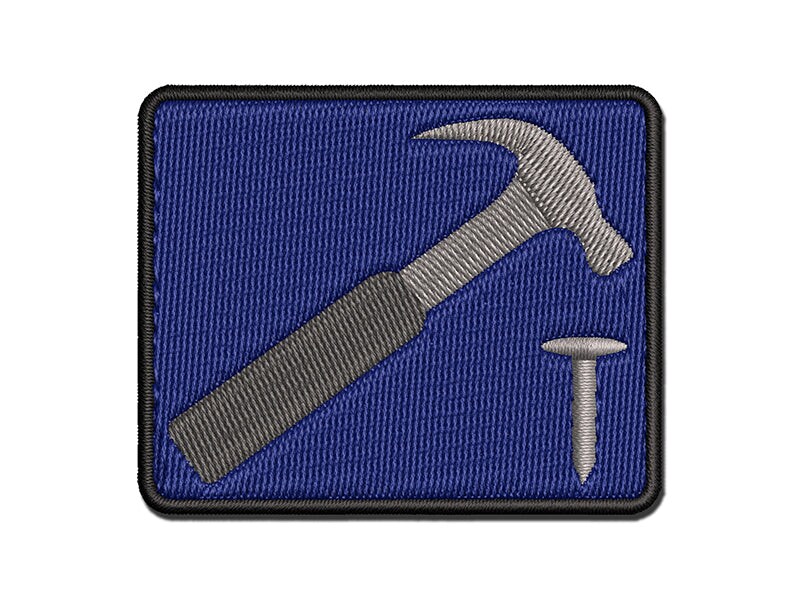 Hammer and Nail Construction Multi-Color Embroidered Iron-On or Hook & Loop Patch Applique