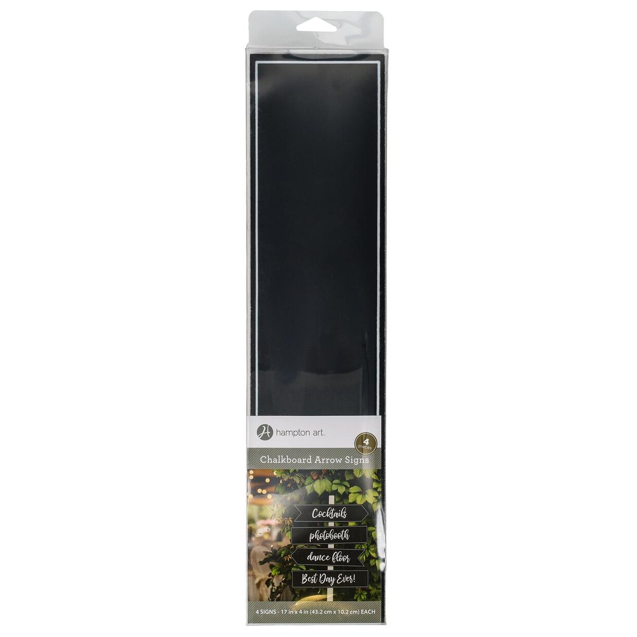 Hampton Art Chalkboard Arrow Sign 17" x 4", 4 pack double sided, Two rectangle shapes and two arrow shapes, for weddings, parties home decor and much more