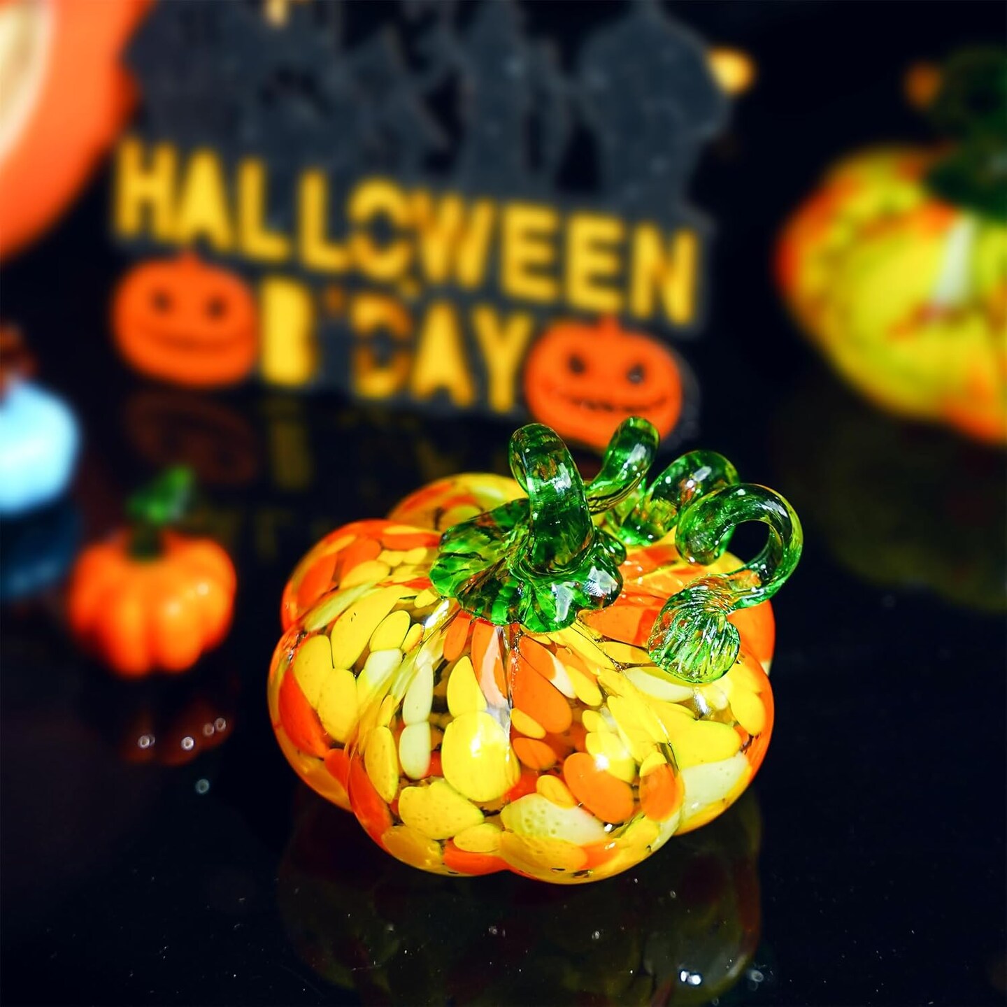 Hand Blown Glass Pumpkin Figurine for Decorations Fall