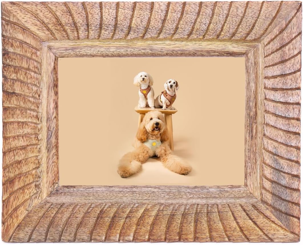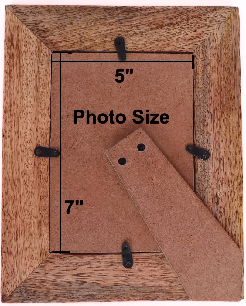 Hand Carved Mango Wood 5x7 Picture Frame with Real Glass(Brown)10.5"L x 8.5"W