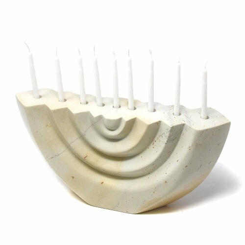 Hand Carved Soapstone Menorah White Finish Candle Holder for Hanukkah