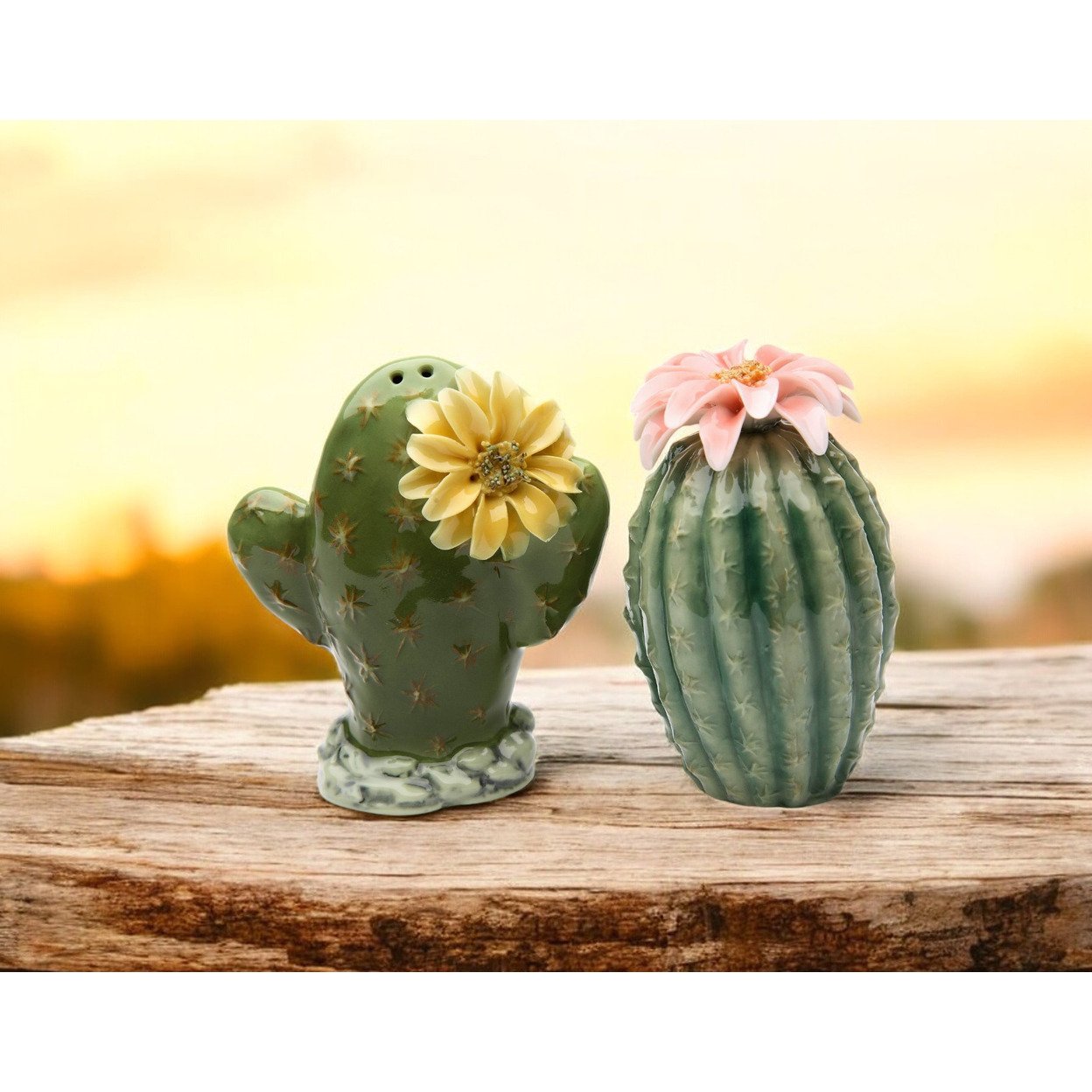 Hand Crafted Ceramic Cactus with Flowers Salt and Pepper Shakers, Home Decor