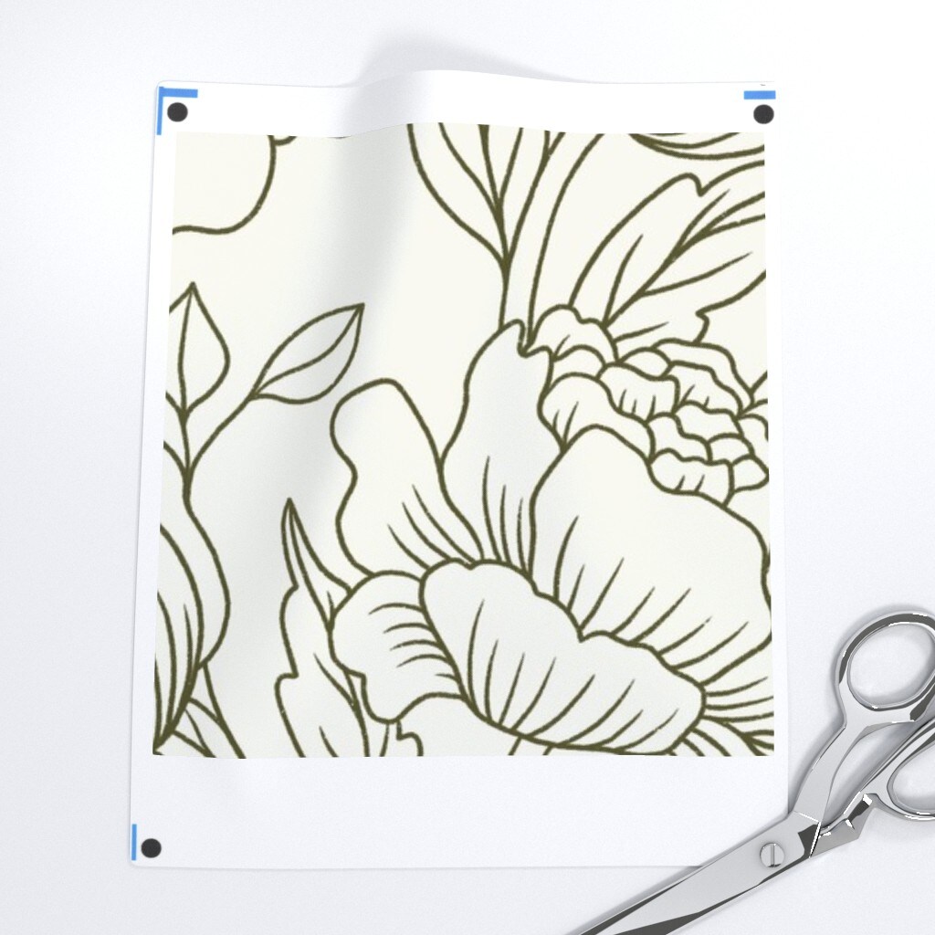 Hand Drawn Flowers Sage Green Minimalist Large Scale Line Art Custom Printed Fabric by Spoonflower Various Fabrics by the Yard or Fat Quarter