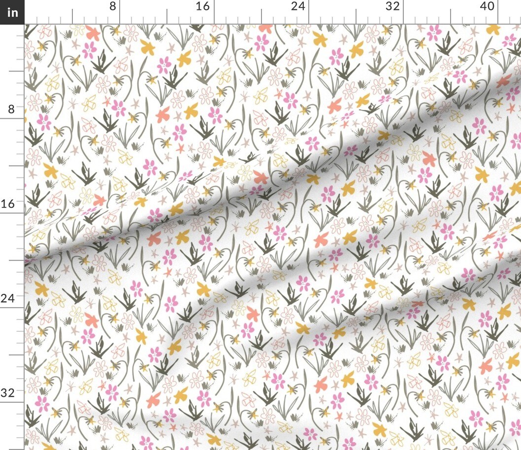 Hand Drawn Wildflowers Garden Nature Daffodil Abstract Spring Custom Printed Fabric by Spoonflower Various Fabrics by the Yard or Fat Quarter