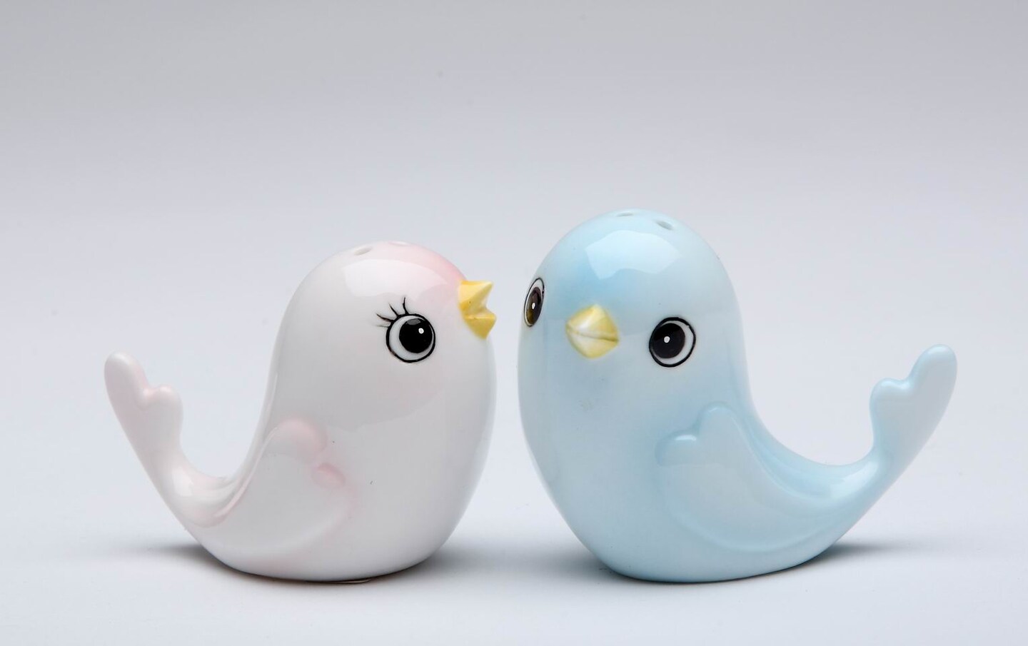 Hand Painted Ceramic Blue and Pink Bird Salt & Pepper Shakers, Wedding Décor, Gift for Her, Gift for Mom, Kitchen Décor, Birdwatcher Gift