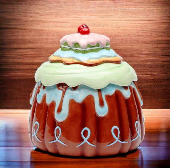 Hand Painted Ceramic Cake Cookie Jar, Home Décor, Gift for Her, Gift for Mom, Kitchen Décor, Cafe Decor, Bakery Decor