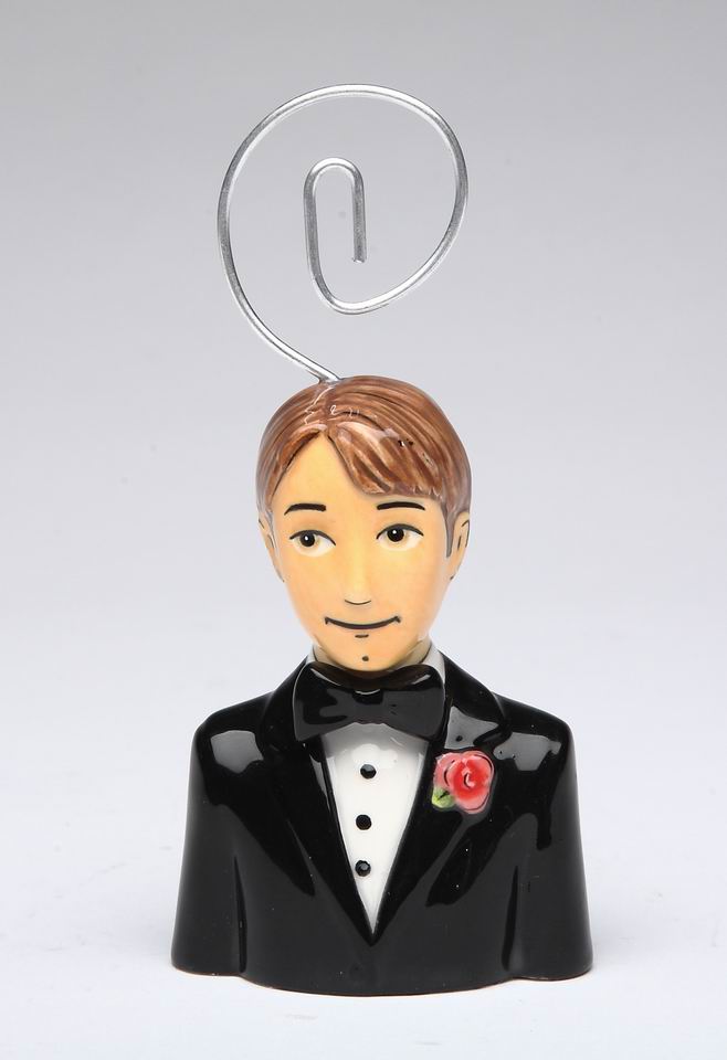 Hand Painted Ceramic Wedding Groom Card Holder, Bachelor Party ( Set Of 6 ), Wedding Decor