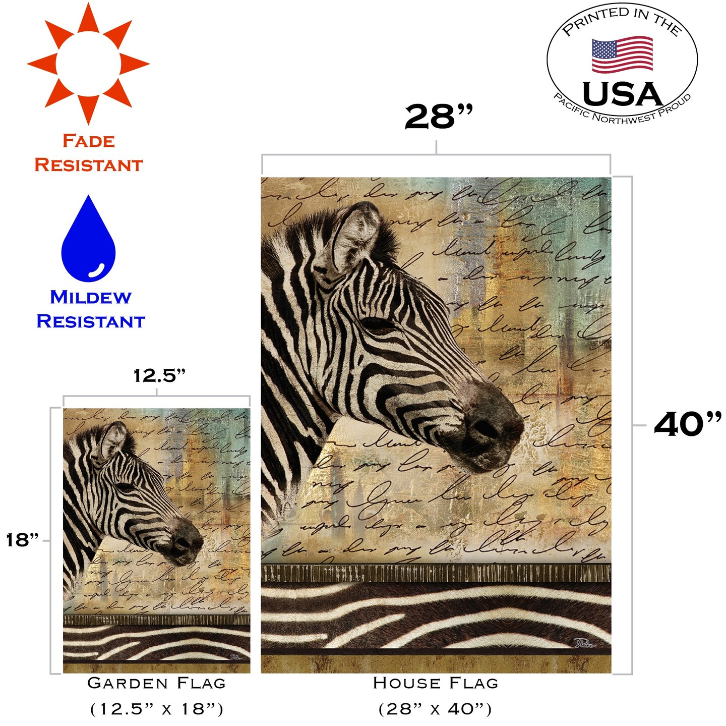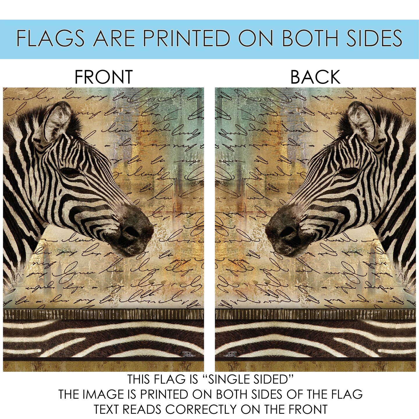 Hand Painted Zebra Decorative Zebra Flag