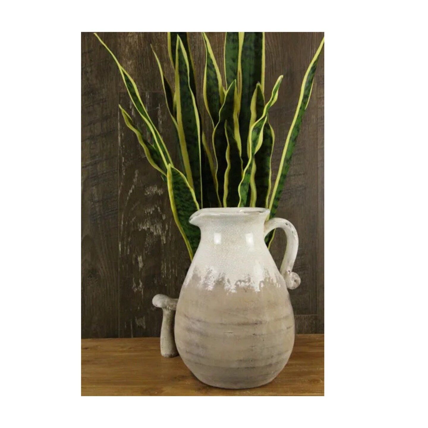 Hand Thrown Ceramic Pitcher Vase Farmhouse Decor Accent-CB504327