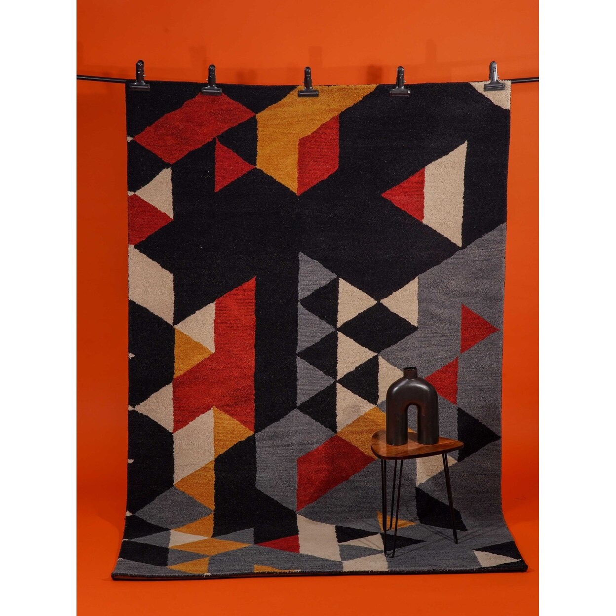 Hand Tufted Wool Area Rug Multicolor Geometric K00s12 Soft High Pile 5X7