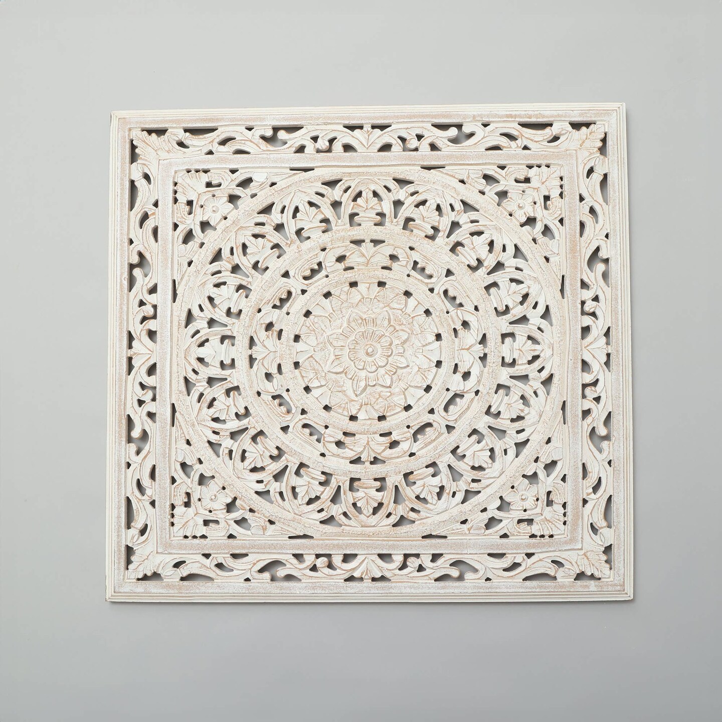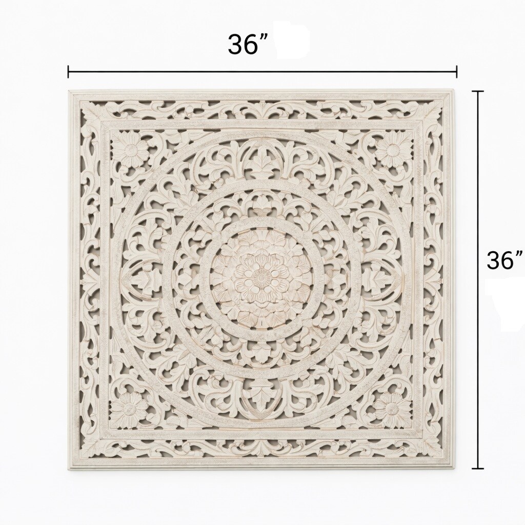 Hand-Carved Mandala Wall Art – 36" x 36" Wooden Decorative Wall Panel