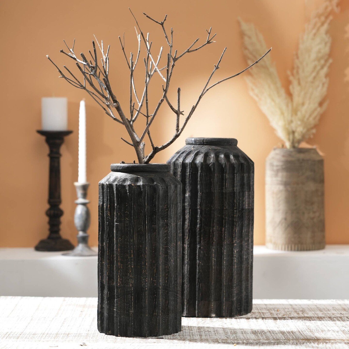 Handcrafted Decorative Wood Vase – Rustic Accent Vase for Shelf, Table, or Entryway Decor