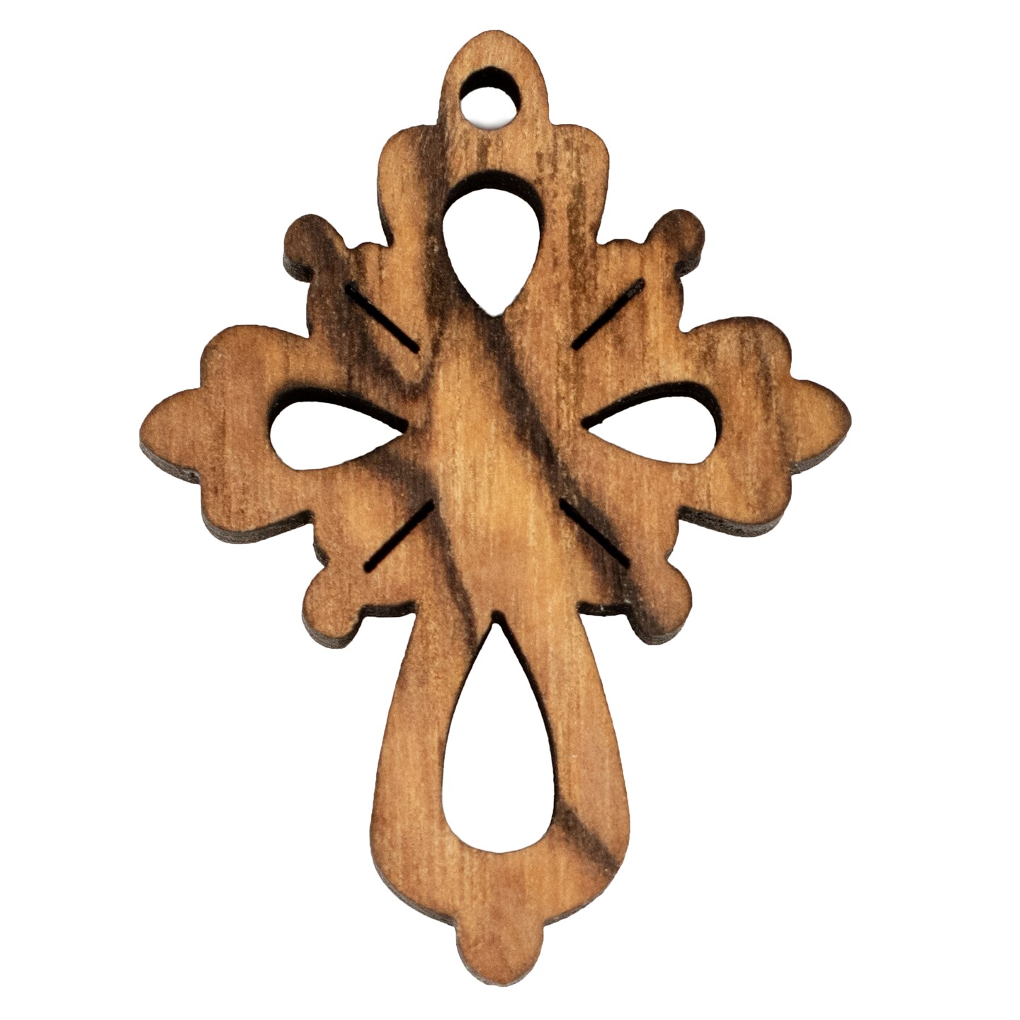 Handcrafted Olive Wood Cross Pendant: Bethlehem Made Floral Design Symbolizing Faith | 35x26mm