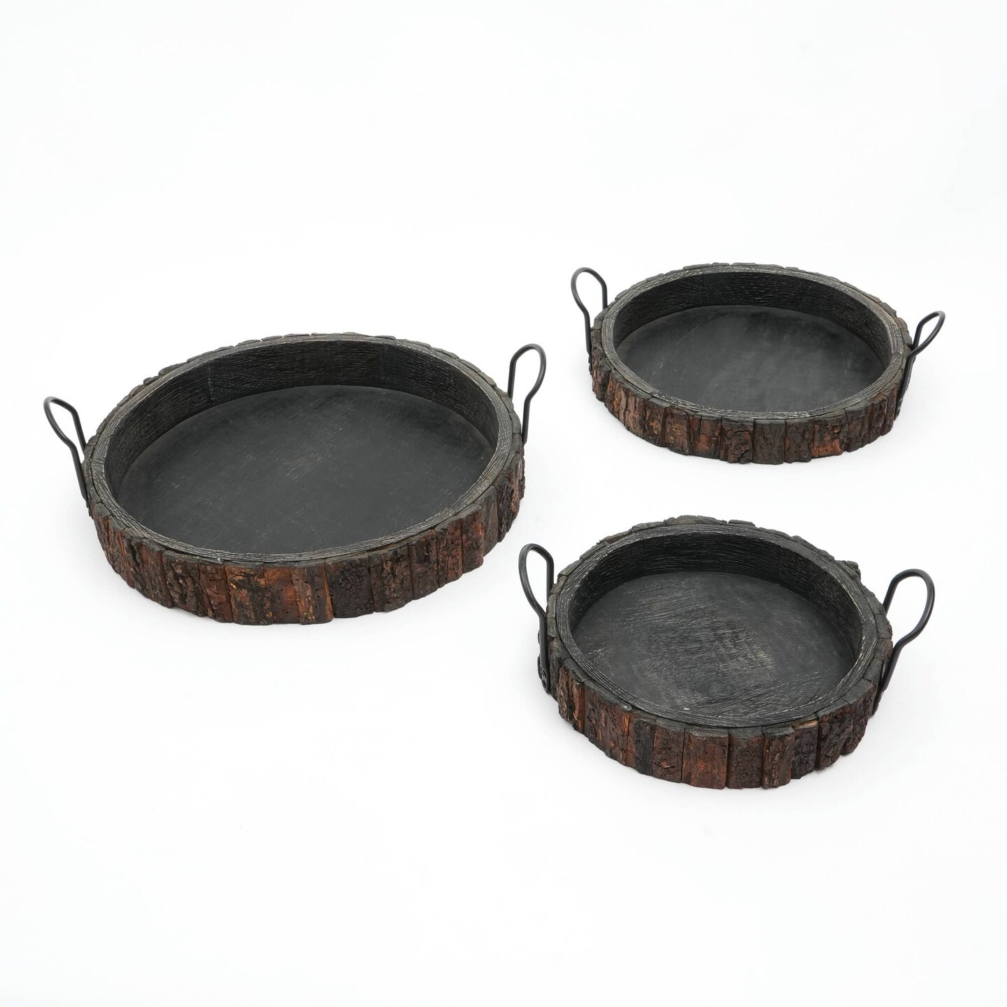 Handcrafted Round Mango Wood Decor & Serving Tray With Metal Handle - Black
