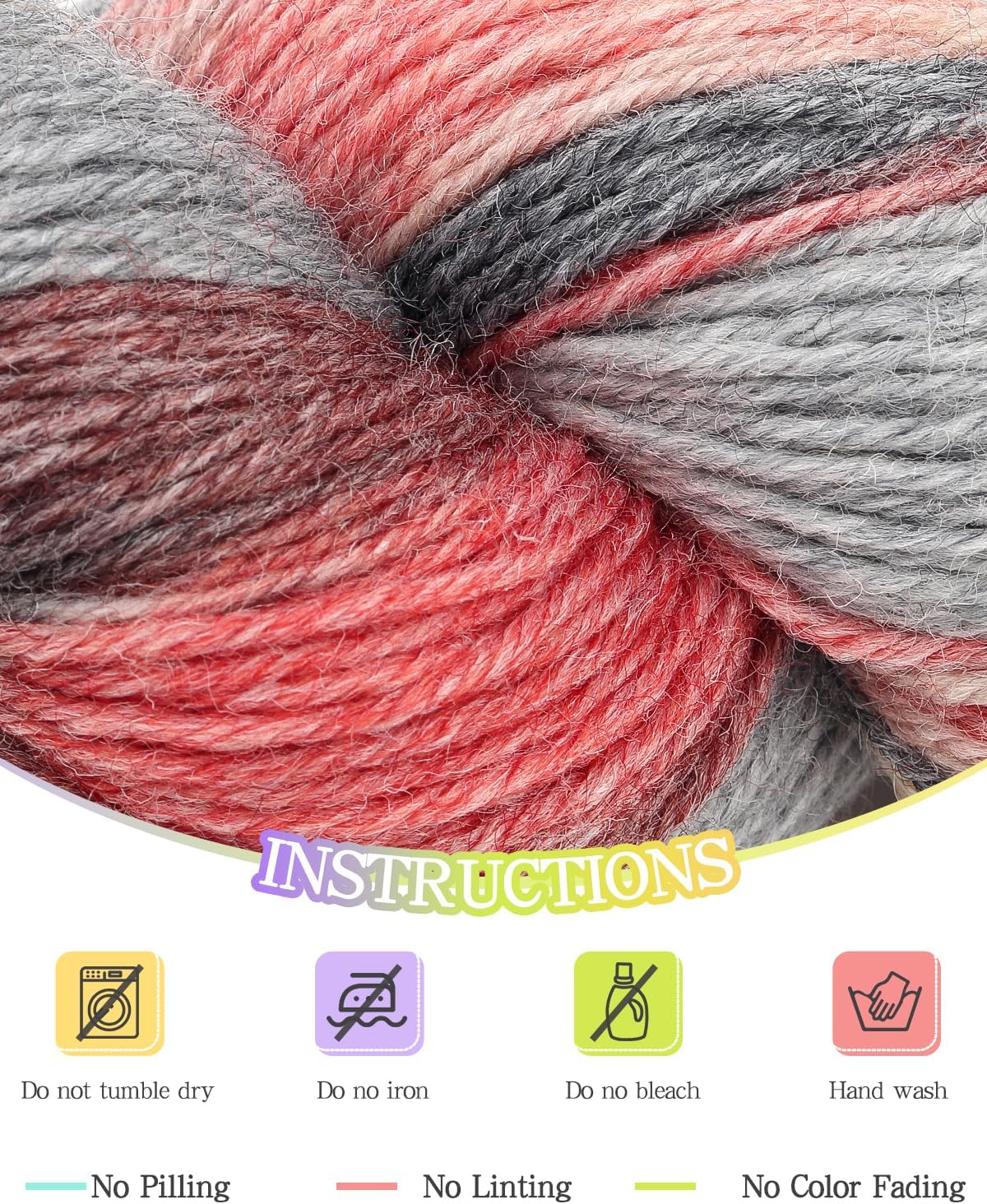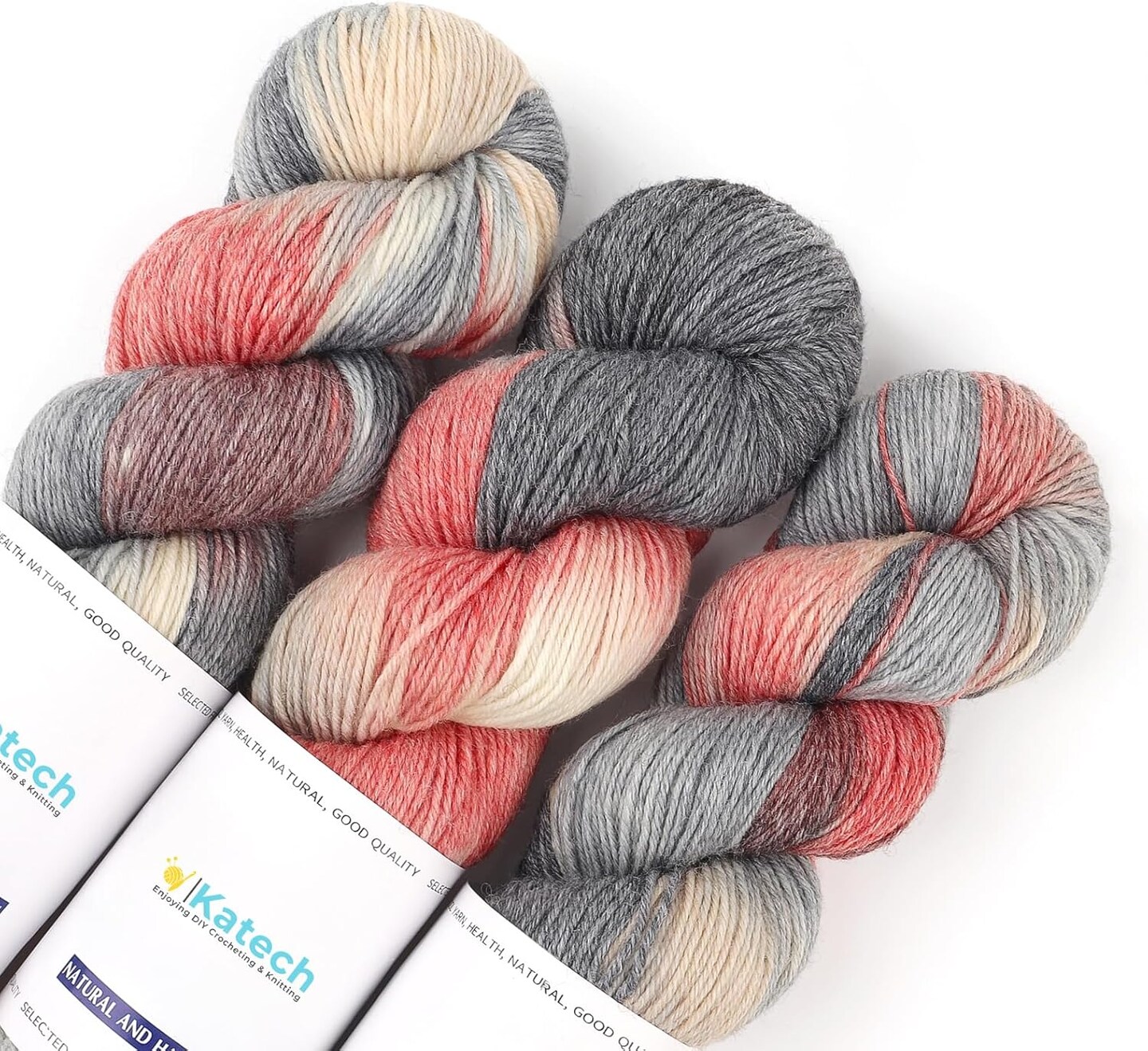 Hand-Dyed Wool & Cashmere Blend Yarn – 3 Pack DK Weight (#3) Yarn for Crochet & Knitting, 300g (885 Yards Total) Soft Luxury Yarn for Socks, Sweaters & Shawls – Black Red