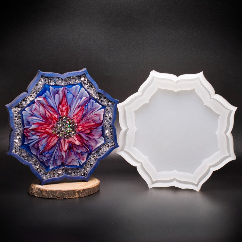 Handmade 8 inch Glossy Flower Border Tray Mold