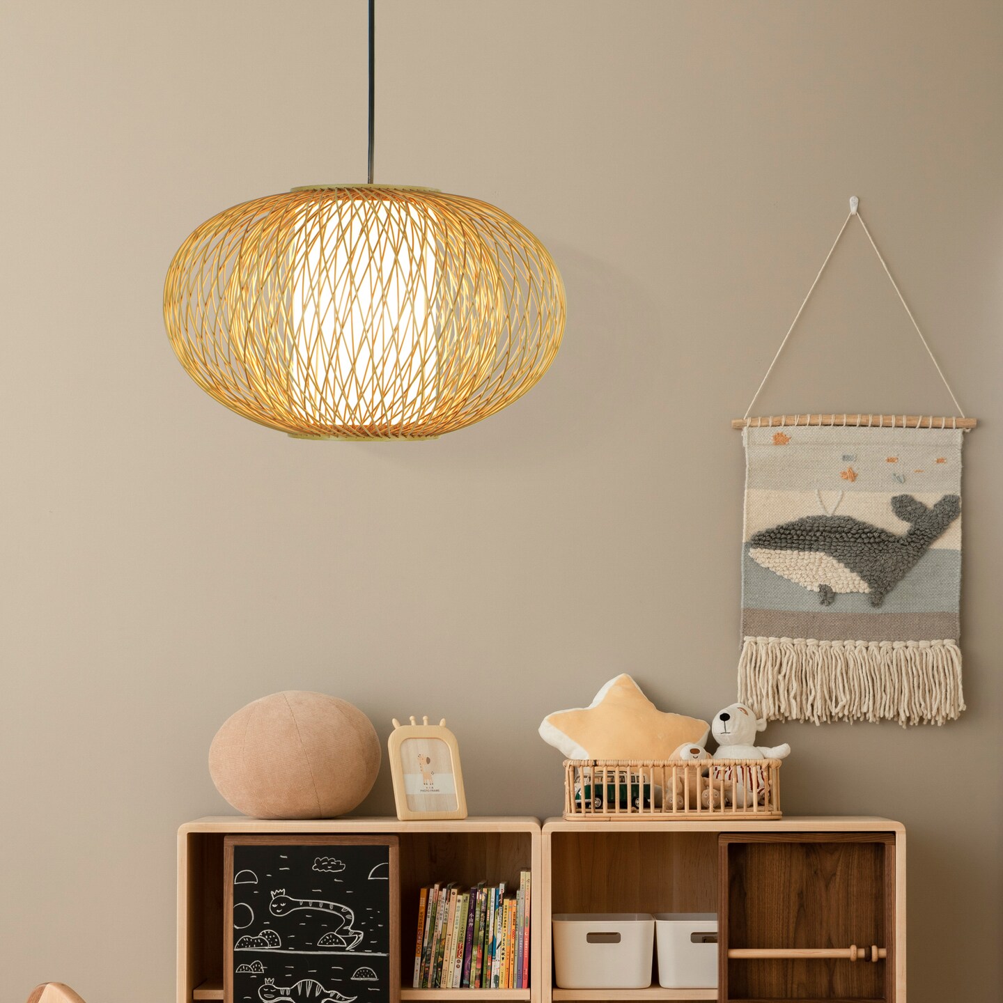 Handmade Modern Round Bamboo Wicker Rattan Lamp Hanging Light Shade