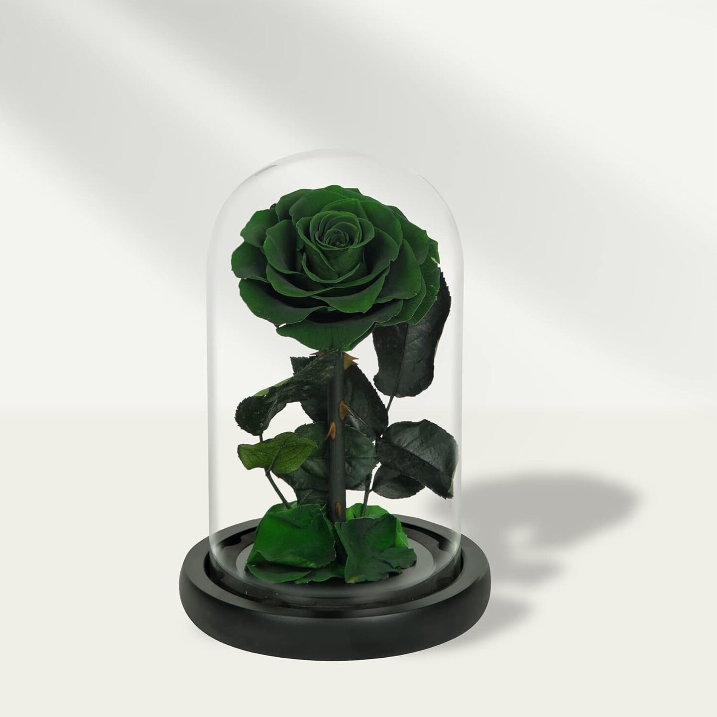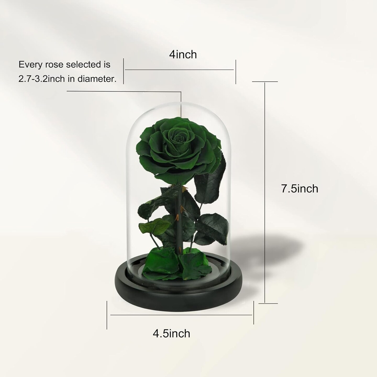 Handmade Preserved Roses in Glass Dome, Long lasting Green Roses Real, Flowers for Women