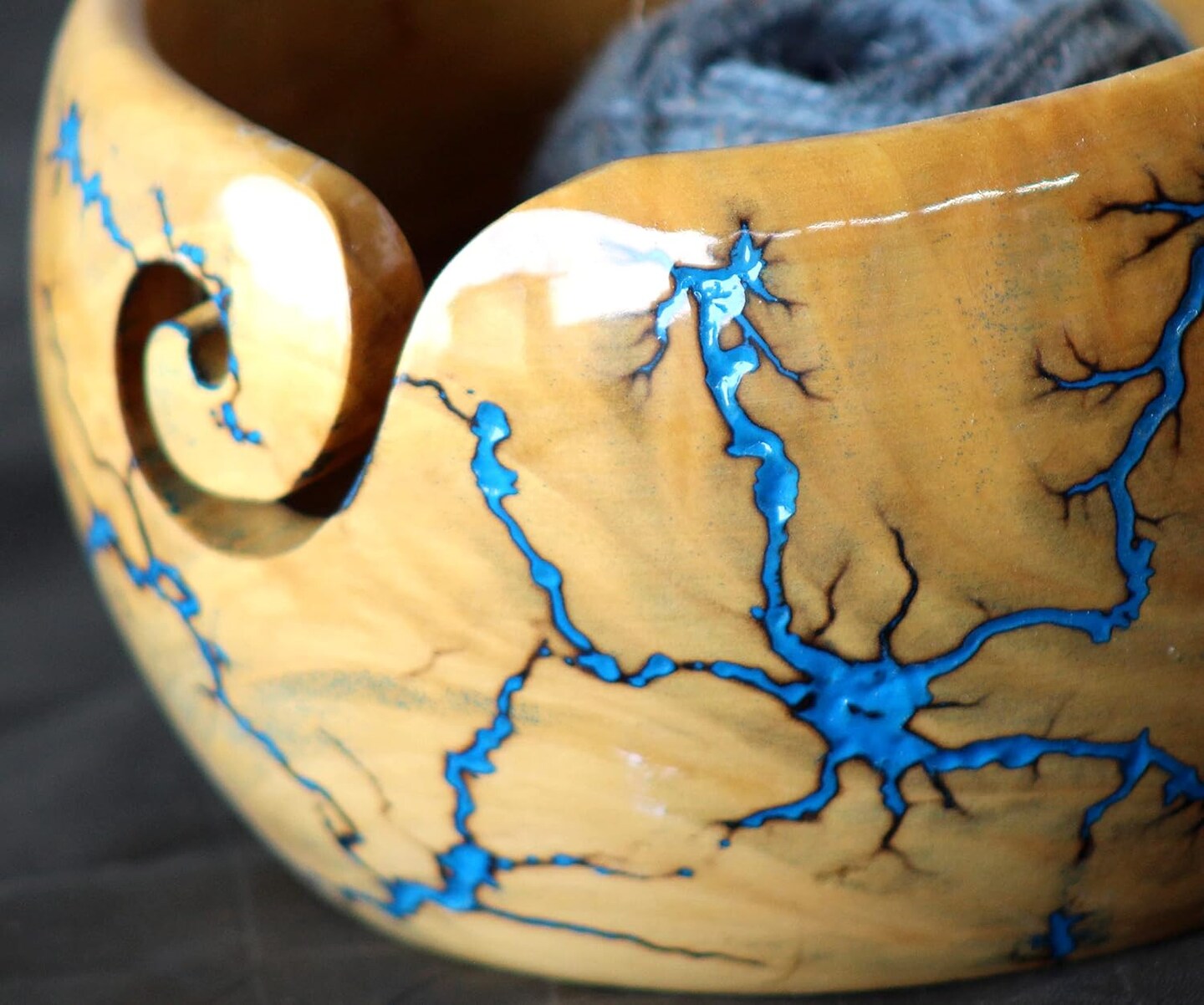 Handmade Wooden Yarn Bowl for Knitting Yarn Ball Holder(Blue-B)