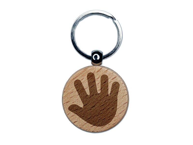 Handprint Solid Engraved Wood Round Keychain Tag Charm
