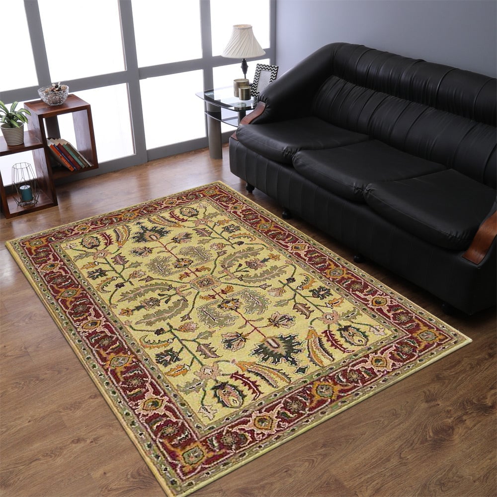 Hand-Tufted Wool Area Rug Gold Red 5X8 Eco-Friendly K07426 Soft Durable