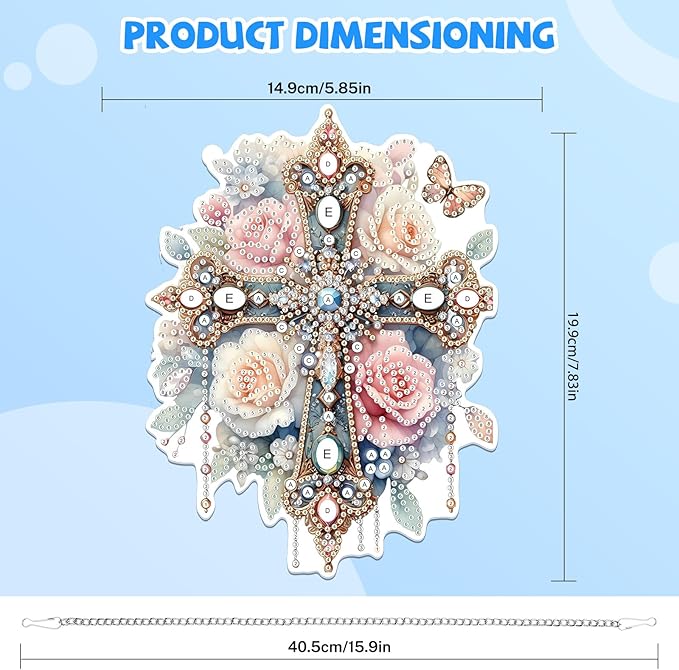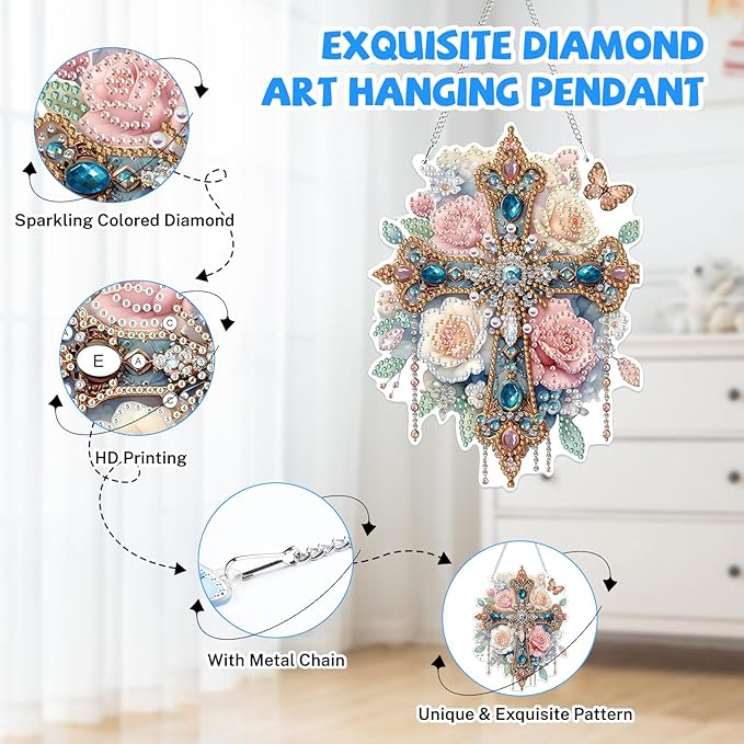 Hanging Diamond Art Cross Kits for Adults, 5D Special Shape Diamond Painting Flower Kits, Cross Diamond Gem Art Suncatchers Painting Pendant Ornament for Home Garden Wall Decor