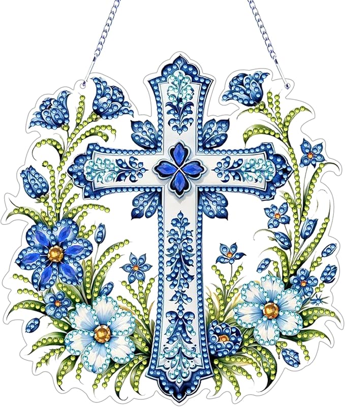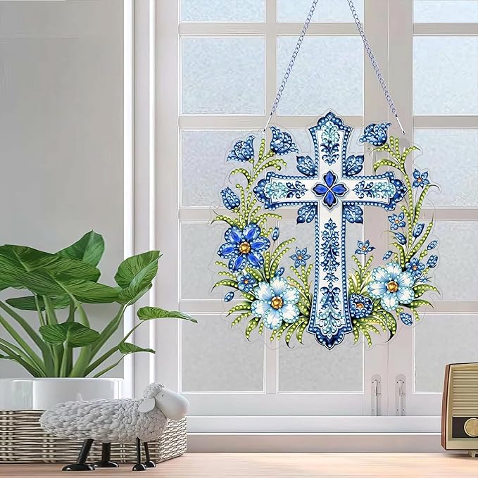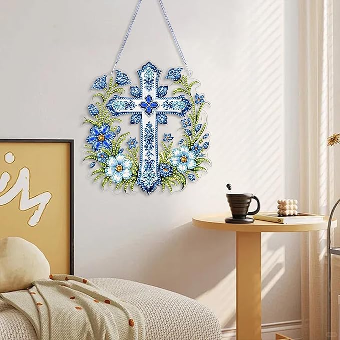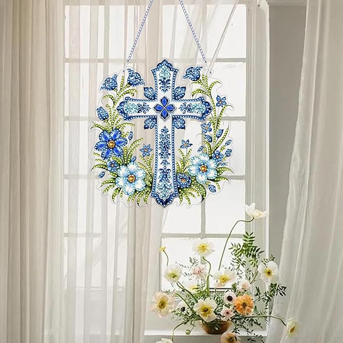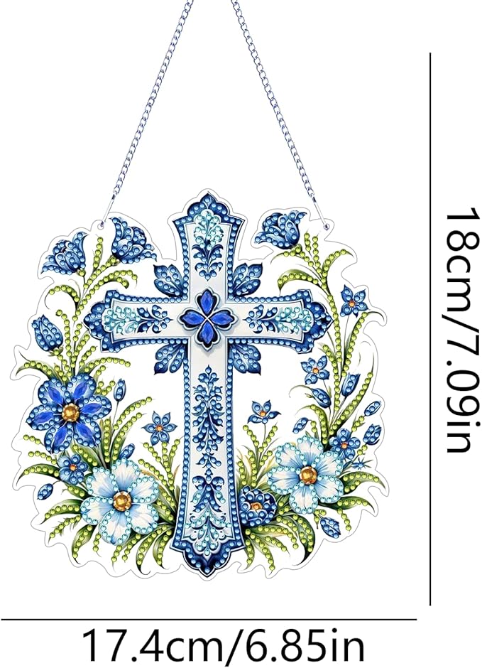 Hanging Diamonds Art kit for Adult,DIY Cross Flowers Pendant Diamonds Painting Art Kit, 7.0x6.8 inch Acrylic Diamonds Painting Board Kit Ornament, Special Crystal Diamond Hanging Ornament