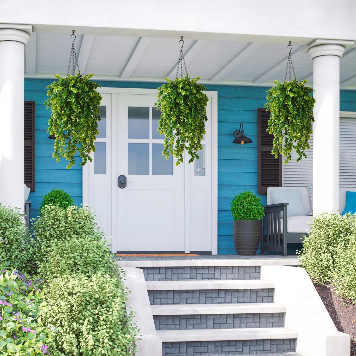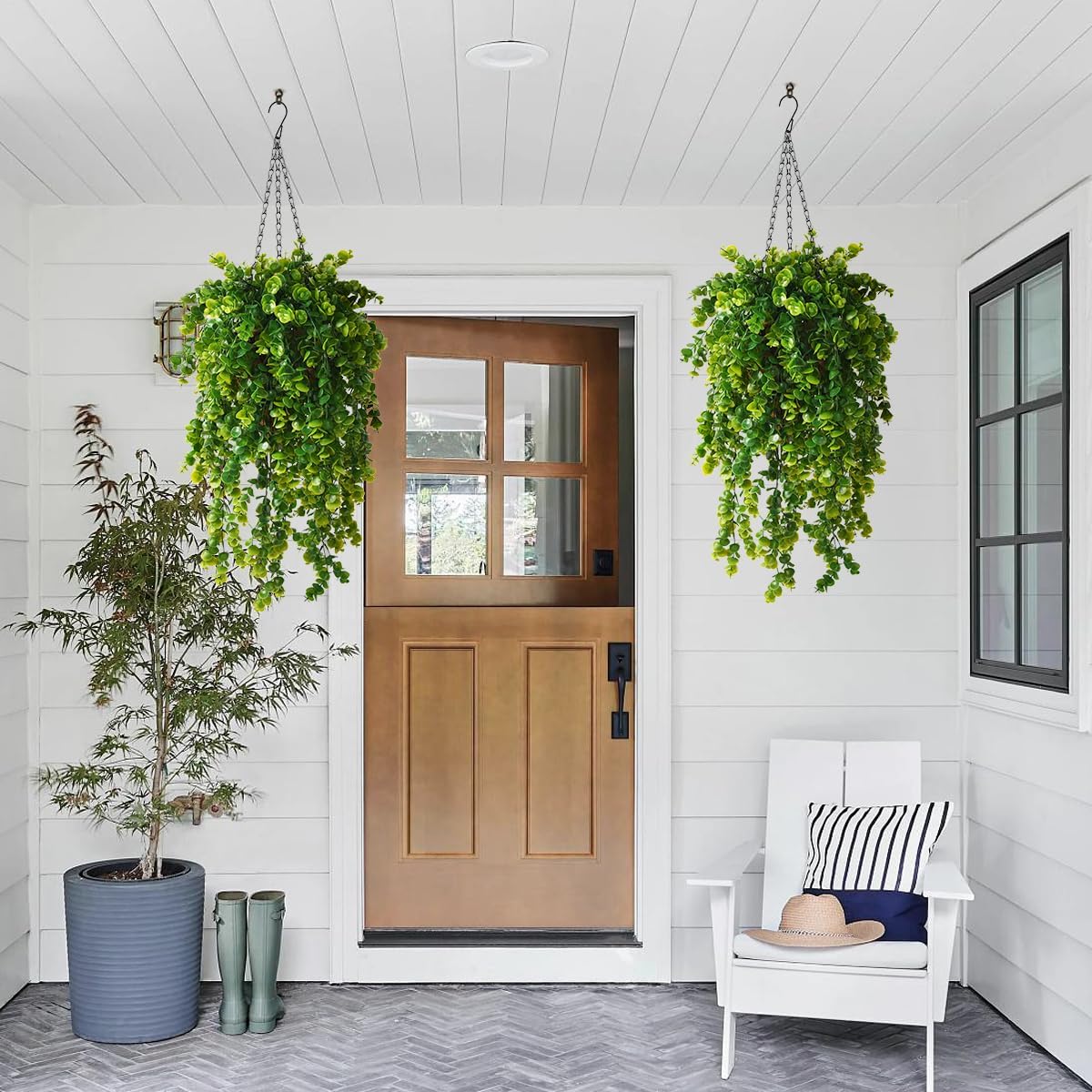Hanging Eucalyptus Plants with Basket - UV Resistant Décor