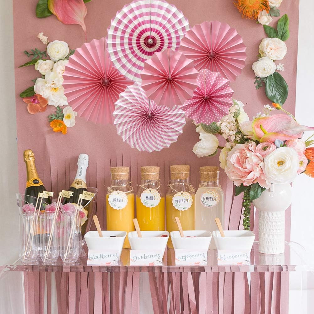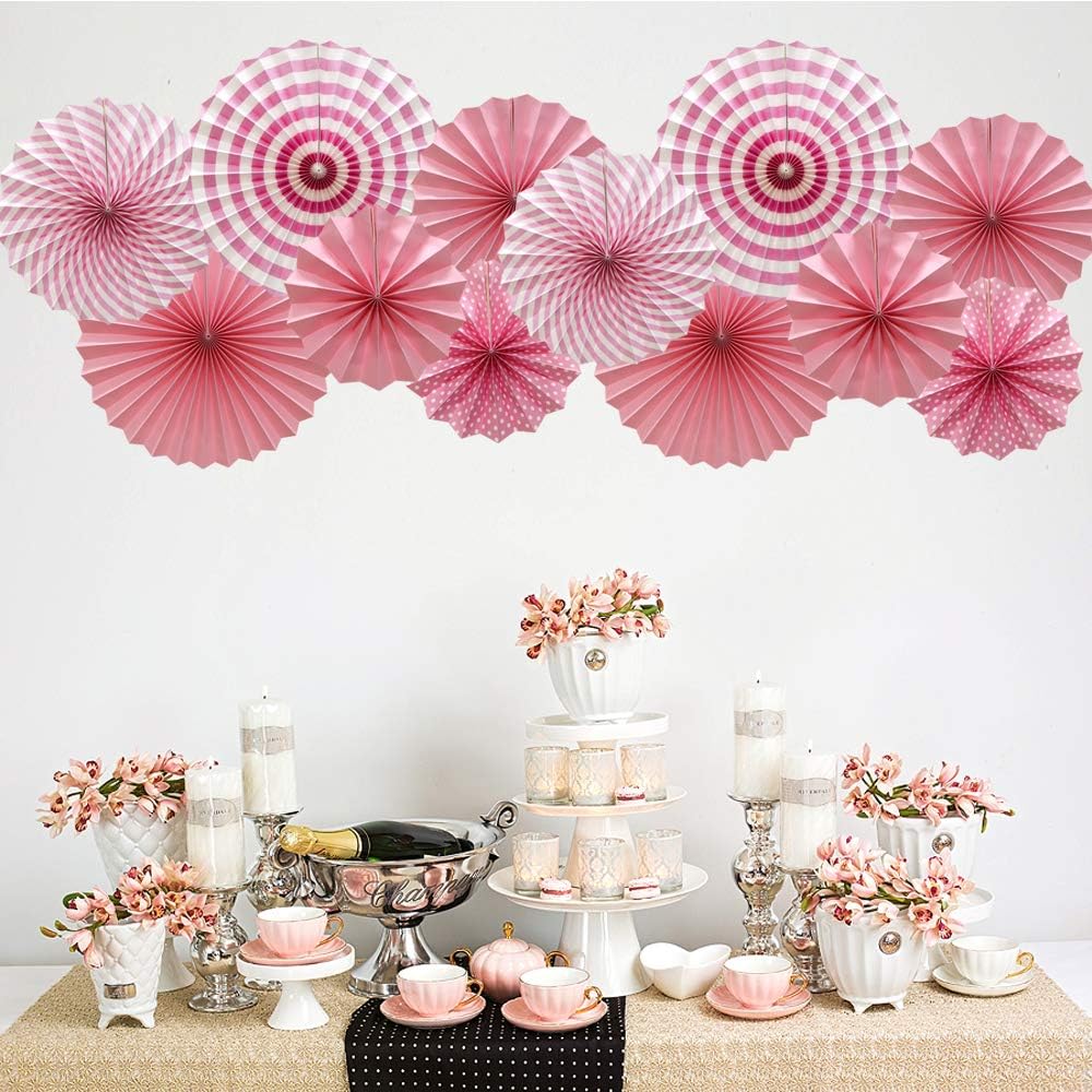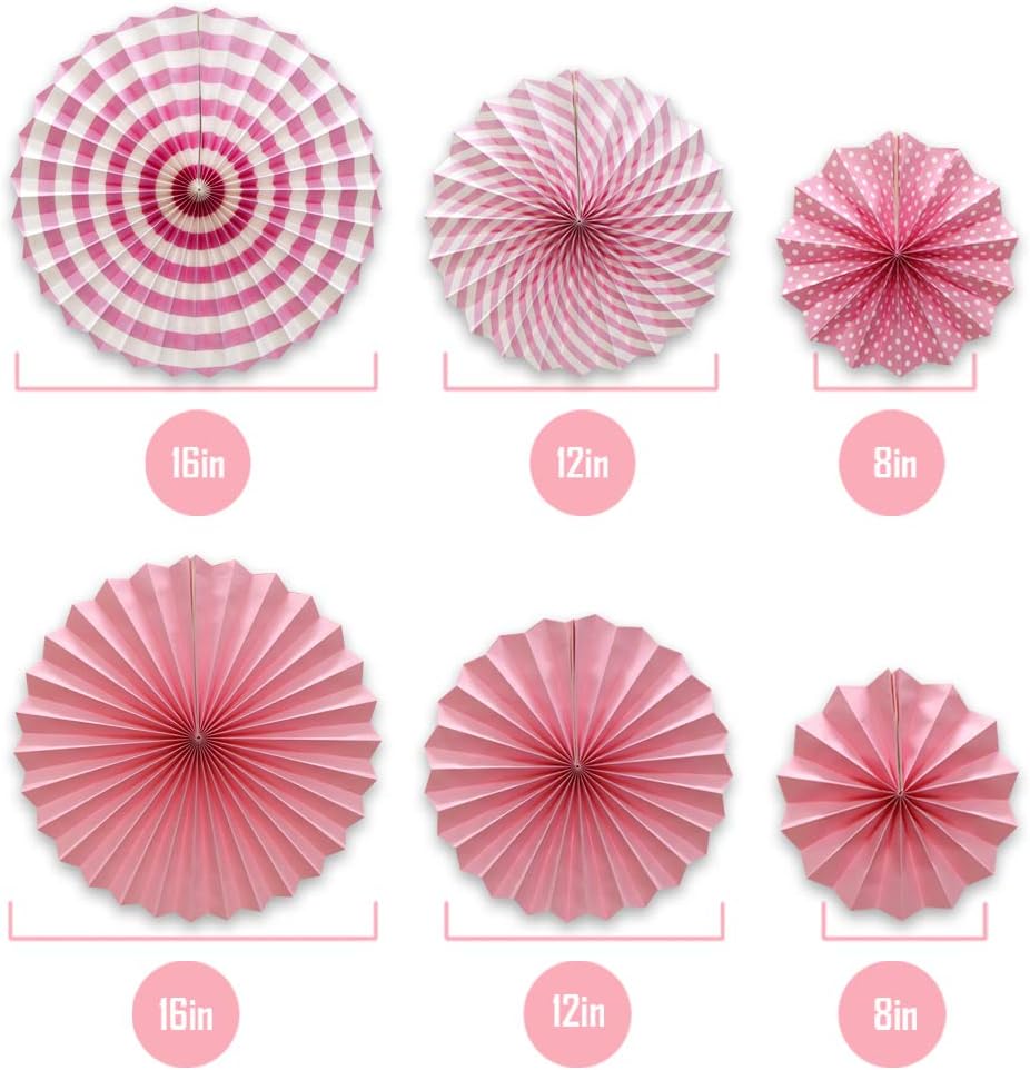 Hanging Paper Fans Party Set, Round Pattern Paper Garlands Decoration for Birthday Baby Girl Shower Graduation Bachelorette Valentine's Day, Set of 6 (Pink)
