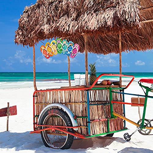 Hanging Sign Shape Welcome Hello Flip Flop Wooden Door Plaque Rustic Wall Sign Yard Indoor Outdoor Garden Decoration with Rope (Welcome)