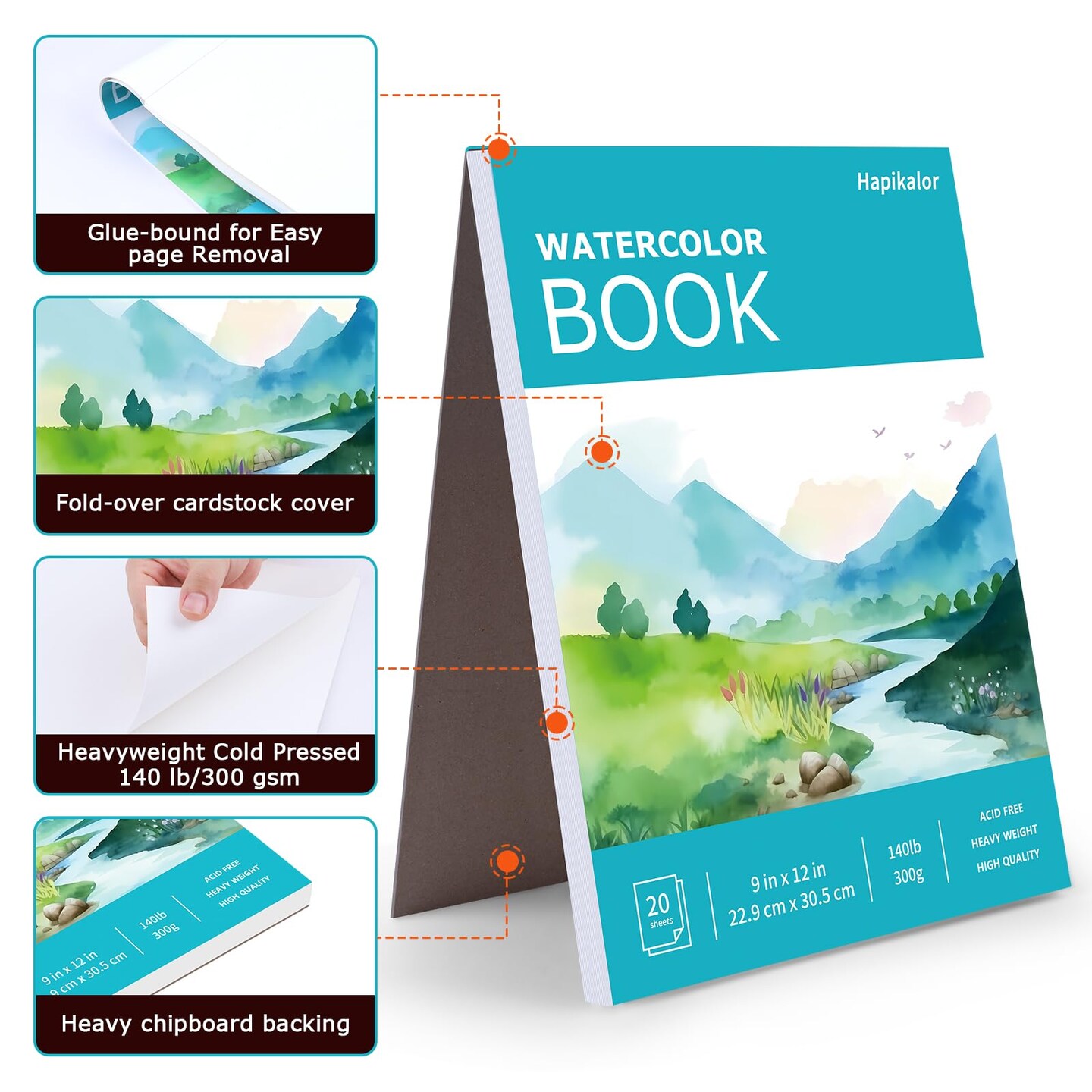 Hapikalor Watercolor Paper Pad, 9"x12" Water Color Paper, 140lb/300gsm Artist Painting Drawing Paper Book, Art Supplies for Adults Kids, Watercolors, Watercolor Paint Set, Sketchbook, Journal, Teal