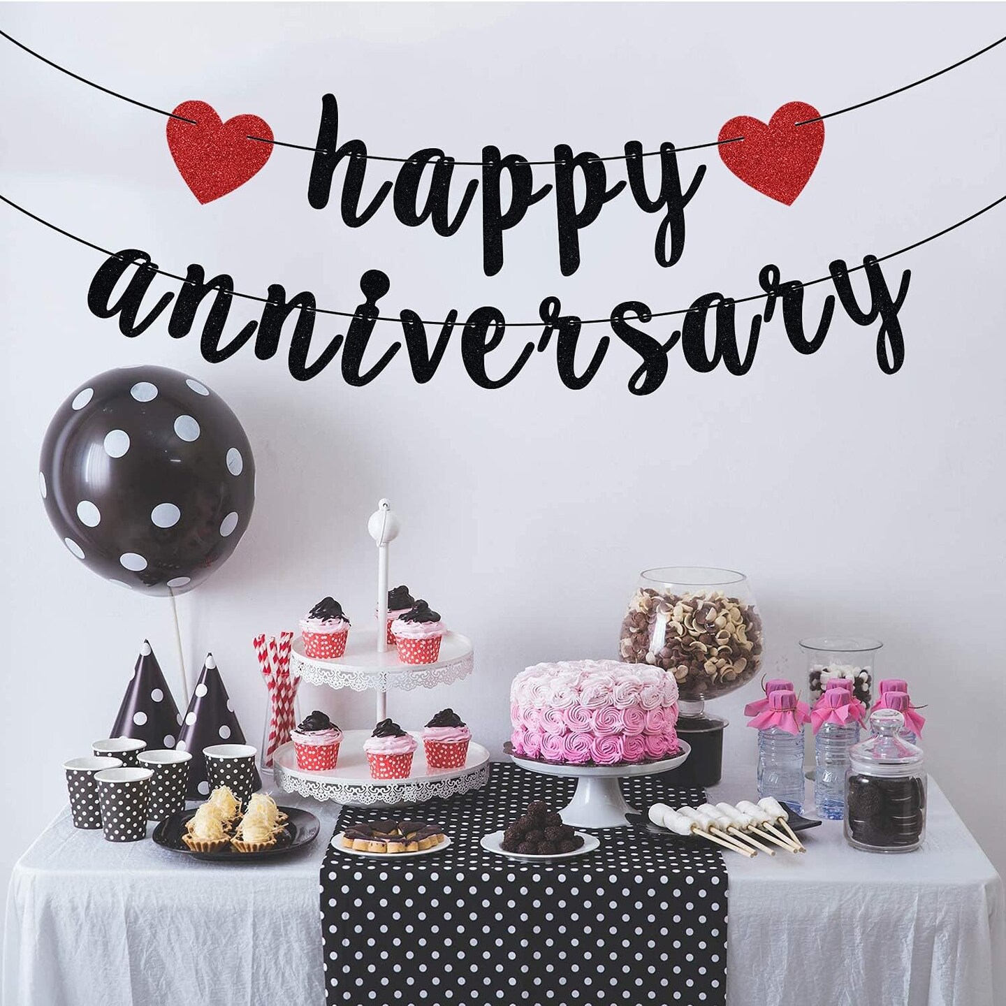 Happy Anniversary Banner Party Decorations (Black)