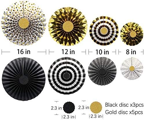 Happy Anniversary Banner Party Hanging Paper Fans Decoration (Black Gold)