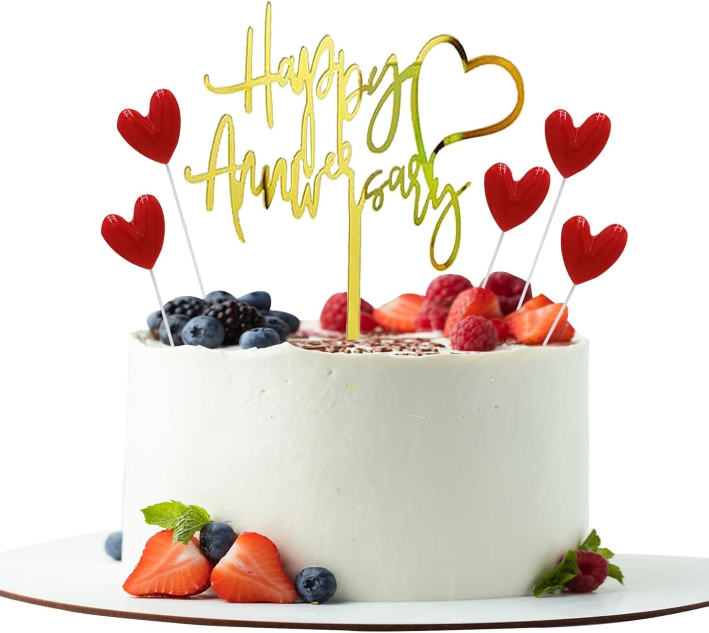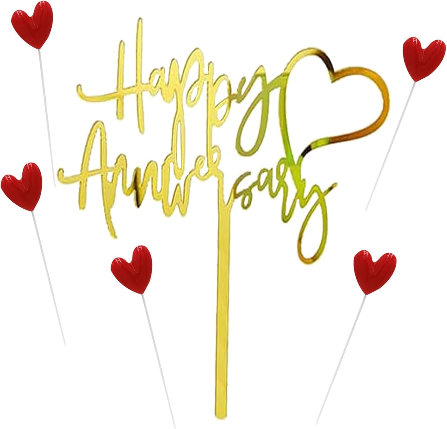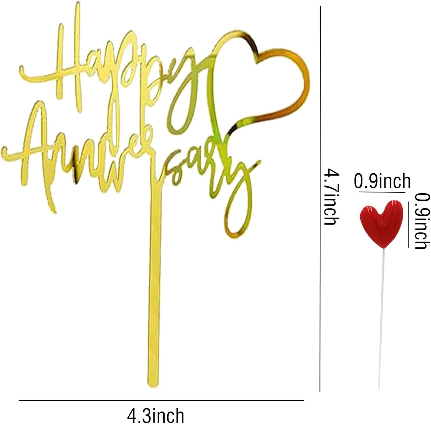 Happy Anniversary Cake Topper - One Gold Heart 3.9"W x 3.9"H