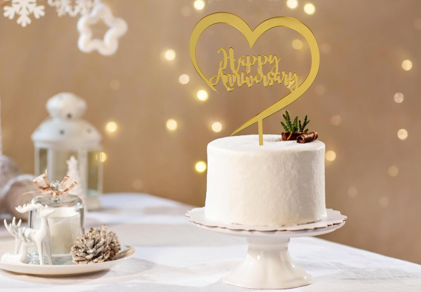 Happy Anniversary Gold Acrylic Cake Toppers 4"W x 5"H