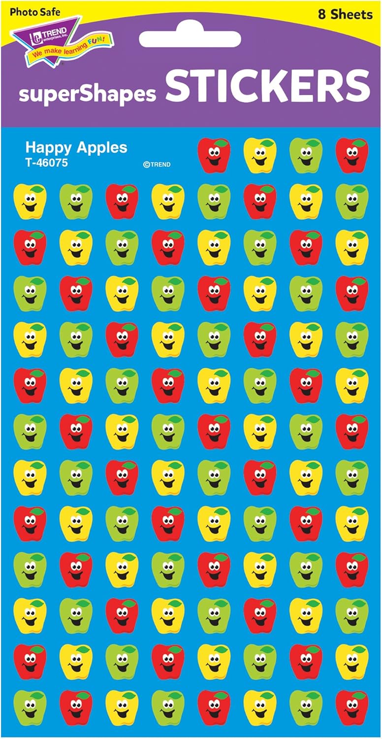 Happy Apples superShapes Stickers – 800 Count, Red/Green/Yellow – Classroom Rewards & Crafts