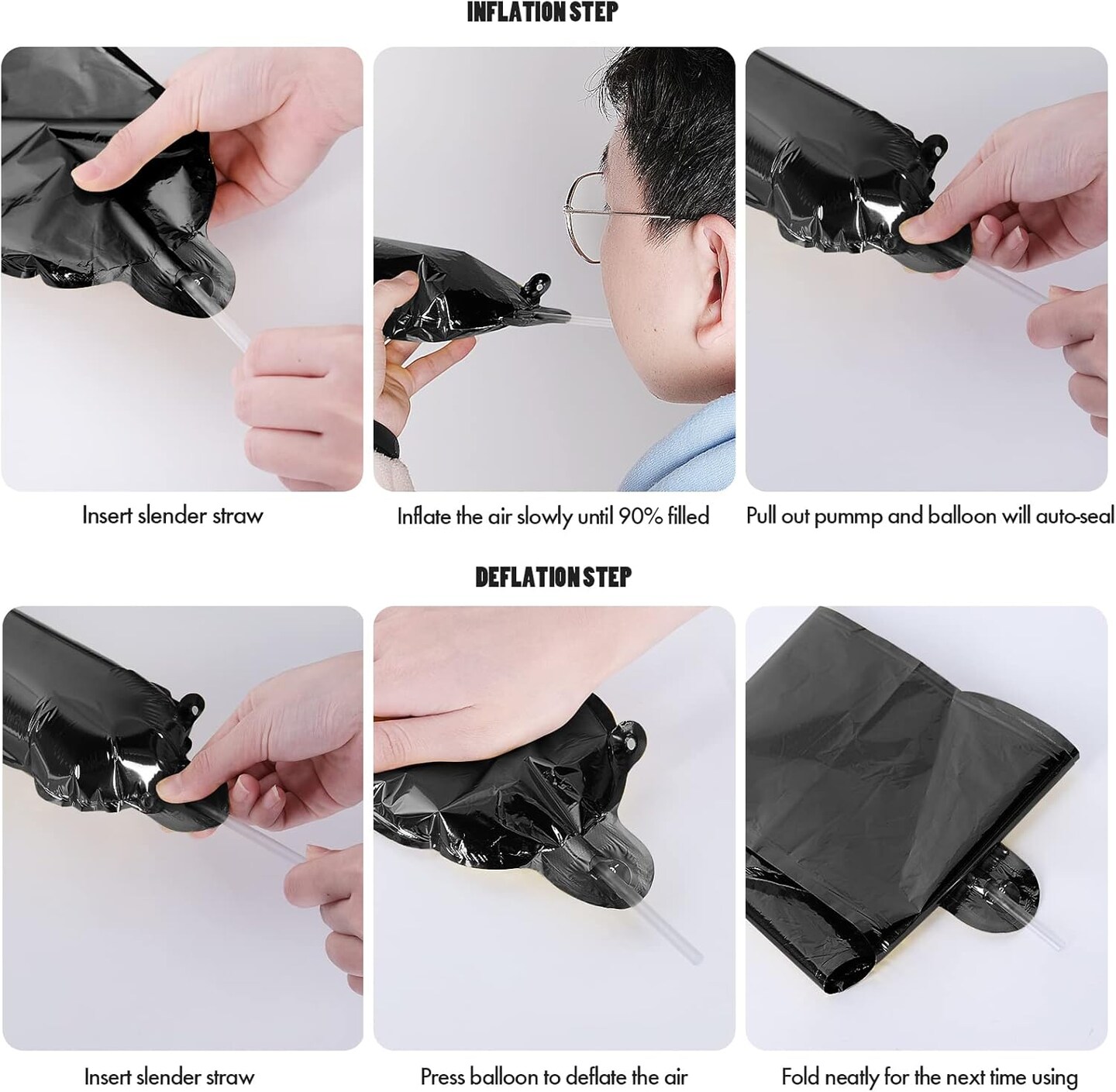 Happy Birthday Balloon Banner – 13pcs 16 Inch Mylar Foil Letters with 8 Star Balloons & LED Lights, 3D Black, Party Decorations for Kids and Adult (Black Set With Light)