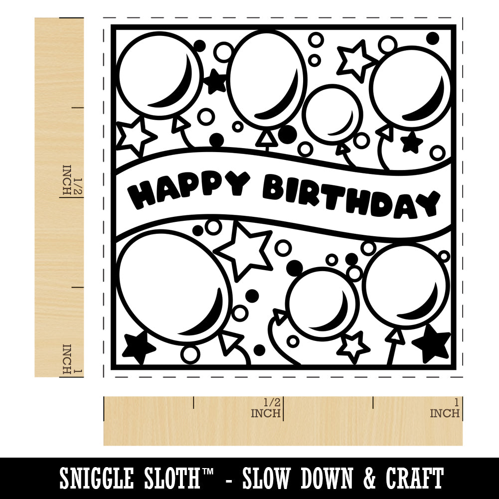 Happy Birthday Cute Balloons and Stars Self-Inking Rubber Stamp Ink Stamper
