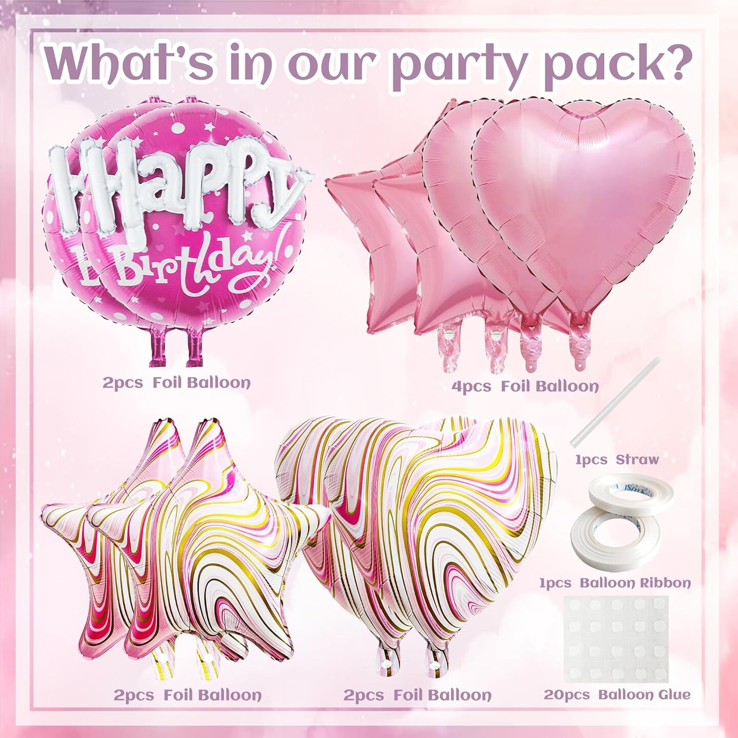 Happy Birthday Decorations Pink Balloons - Happy Birthday Balloons Pack Of 10 Foil Helium