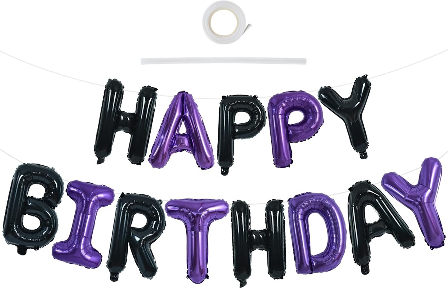 Happy Birthday Foil Balloon Banner – 16" Mylar Letter Balloons, Reusable Birthday Sign for Kids, Adults & Halloween Party Decorations (Black & Purple)