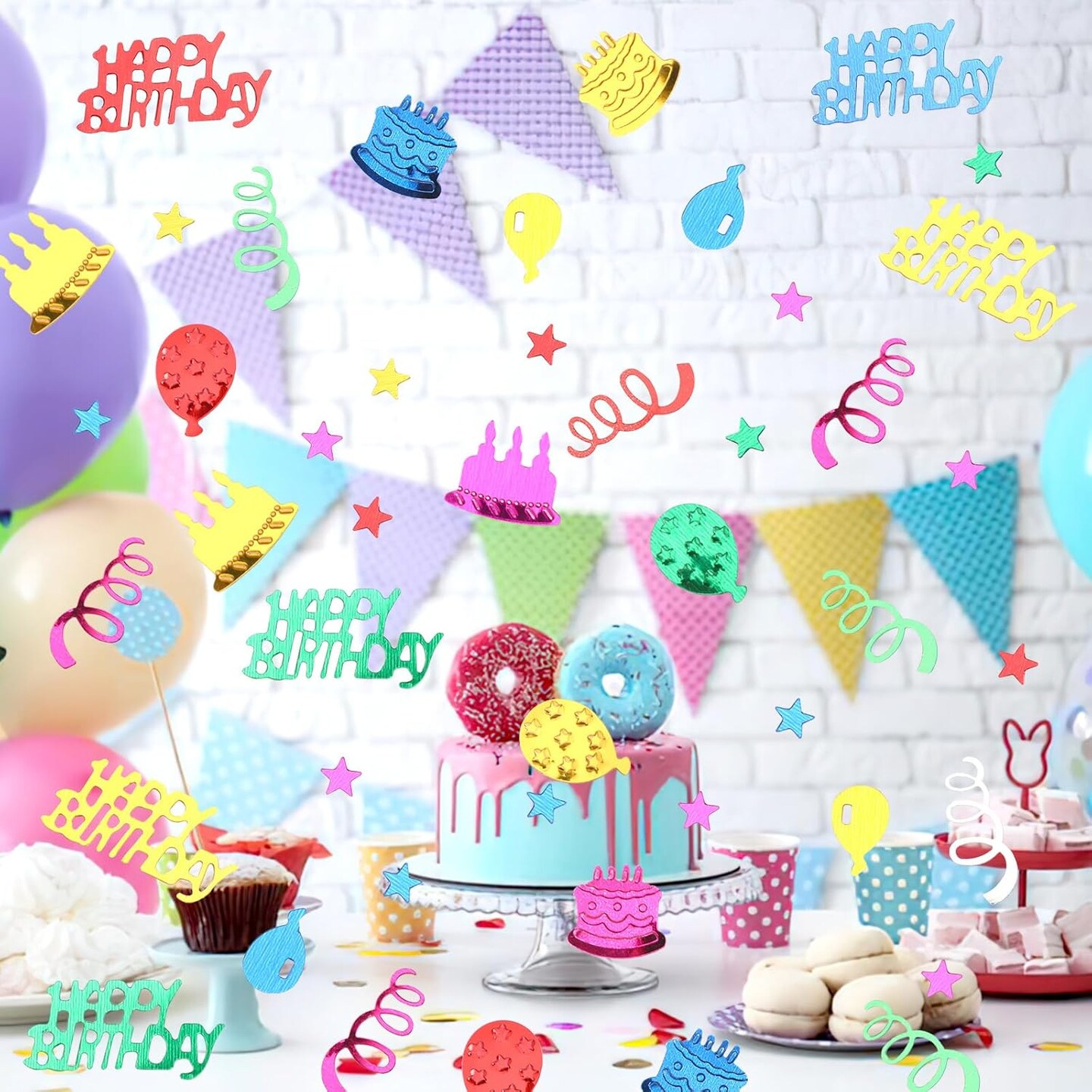 Happy Birthday Glitter Confetti – Multicolor Foil Table Scatter for Parties